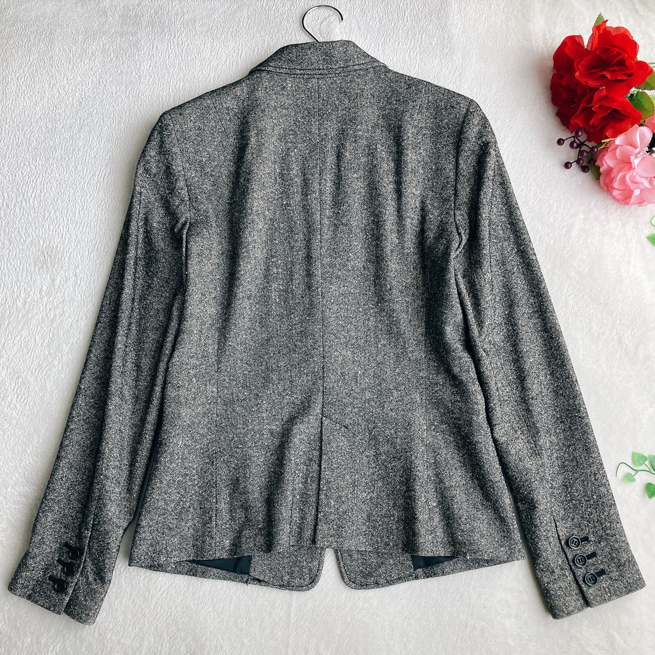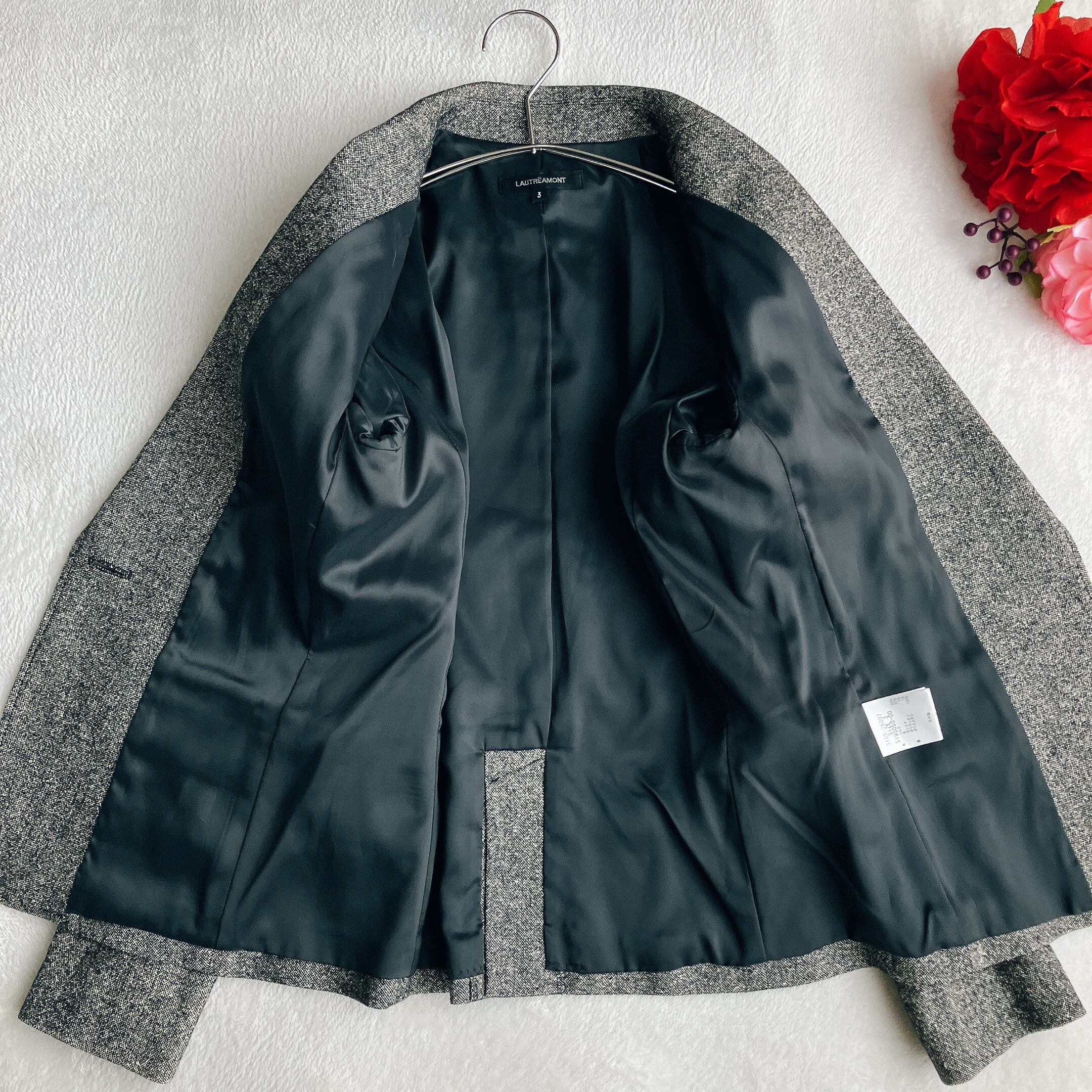 LAUTREAMONT ロートレアモン★シルク カシミヤ ウール メランジ テーラードジャケット 1B ストレッチ ブラック×アイボリー系