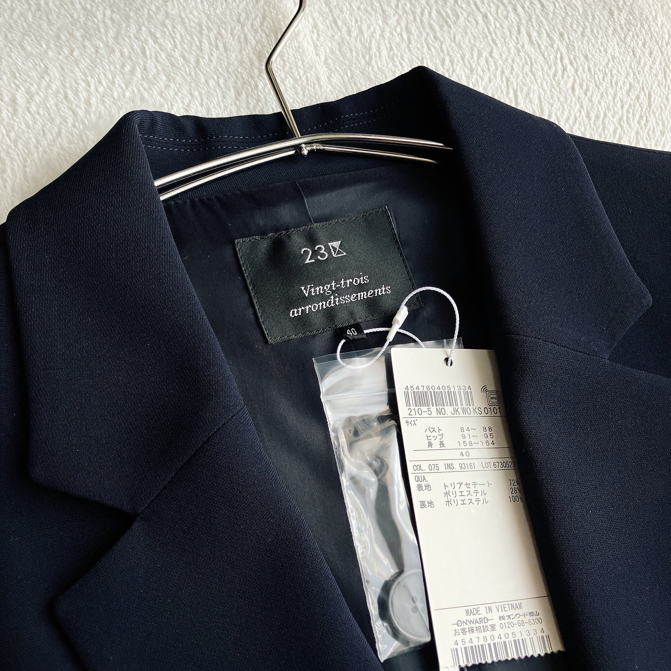 きちんと感のあるネイビー系は、パンツ・スカート・ワンピースとも相性◎。23区/サイズ40で、フォーマルからビジネスシーンまで長く使える一着です。