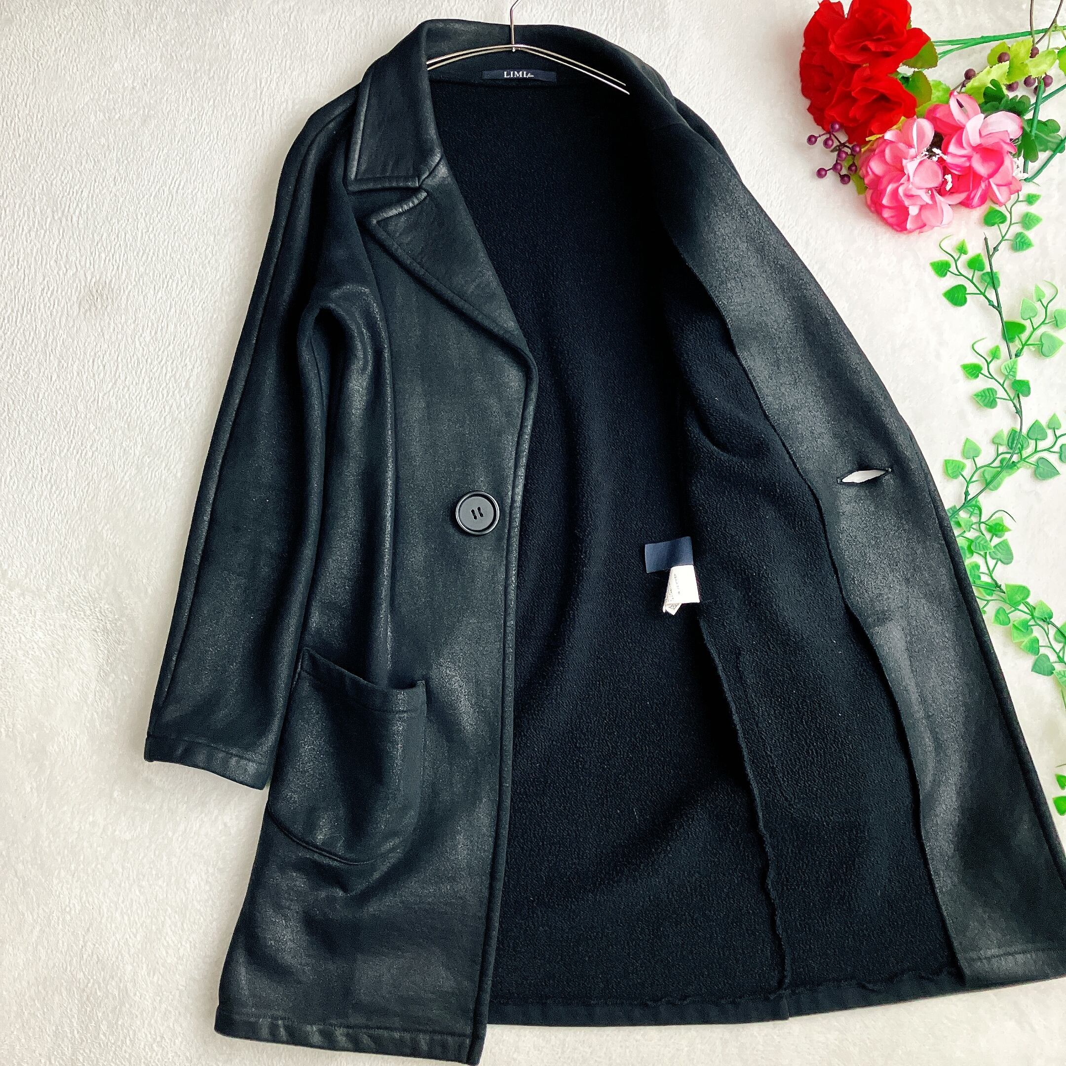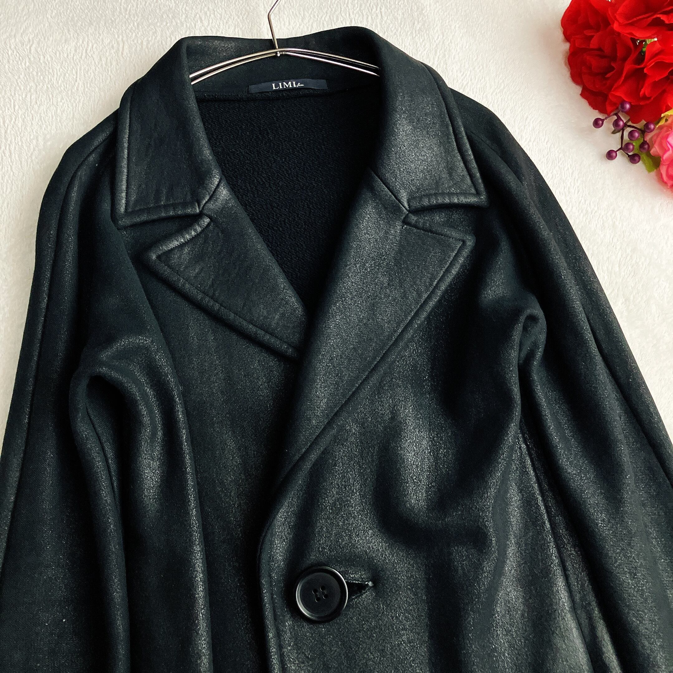 リミフゥ LIMI feu★特殊樹脂スプレー吹付け 光沢 チェスターコート ビッグカラー ブラック