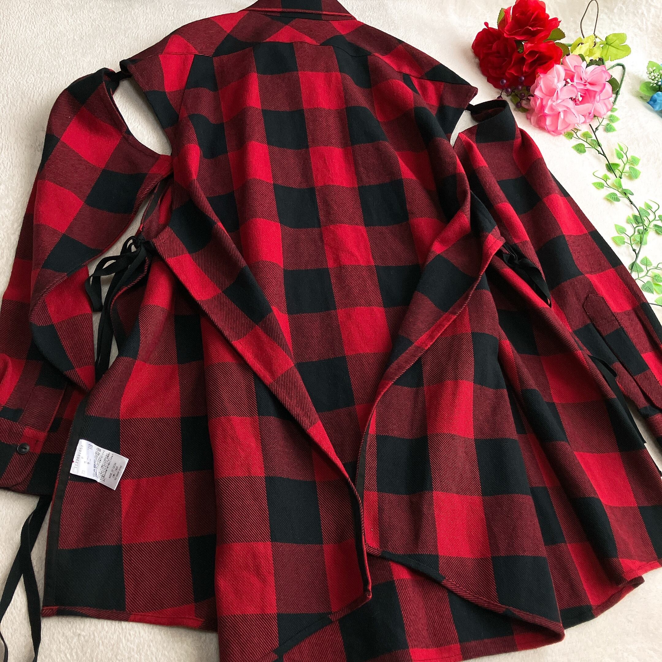 【未使用タグ付き】【長袖脱着可】 VOLTAGE CONTROL FILTER ヴォルテージコントロールフィルター★バッファローチェック シャツワンピース ビッグシルエット レッド×ブラック