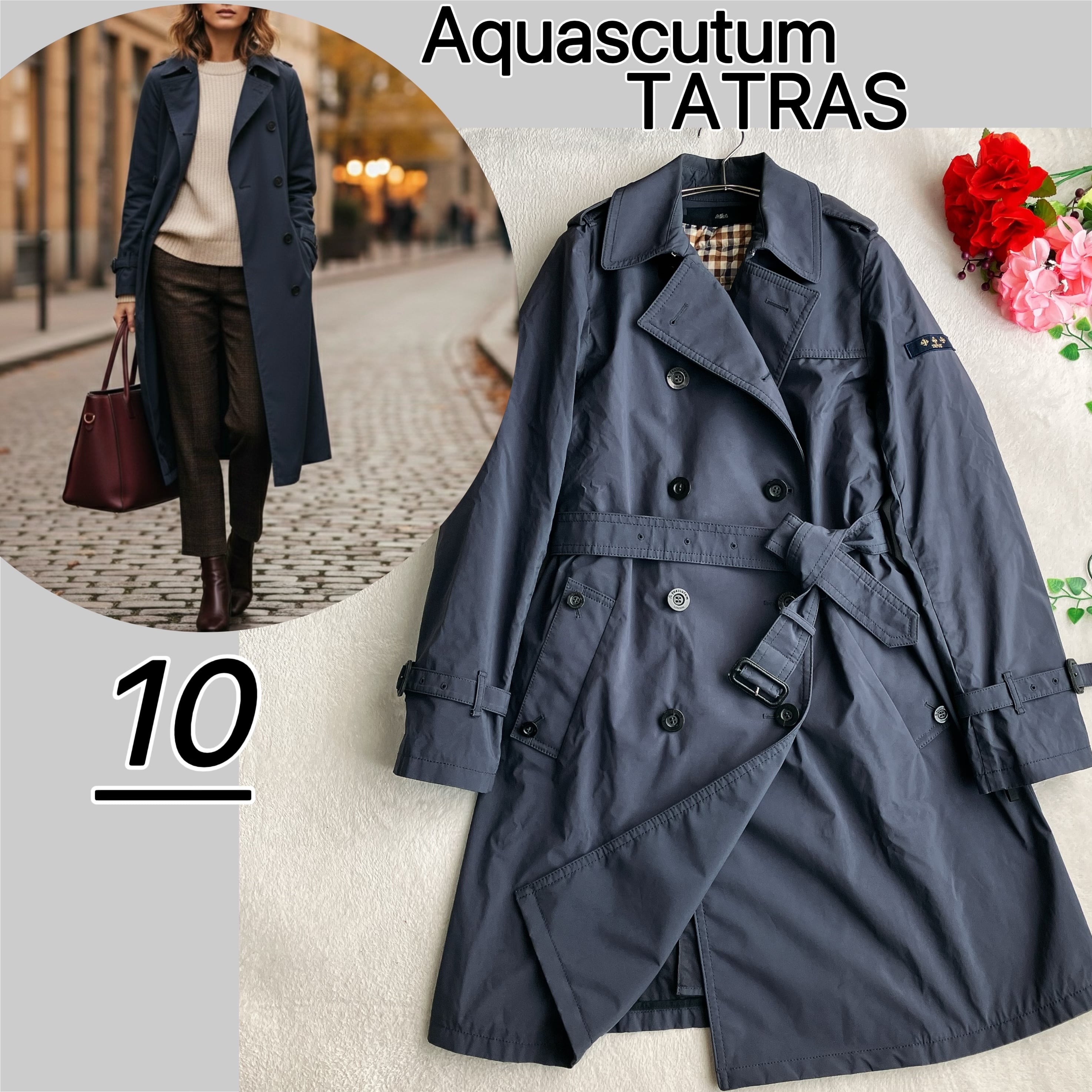 英国王室御用達ブランドAquascutum(アクアスキュータム)と、高機能ダウンで人気のTATRAS(タトラス)によるダブルネームのトレンチコート。定番のダブル仕様・ロング丈・Aラインシルエットで、上品かつ洗練された印象に。人と被りにくい希少コラボモデルは人気の高いアイテムです。