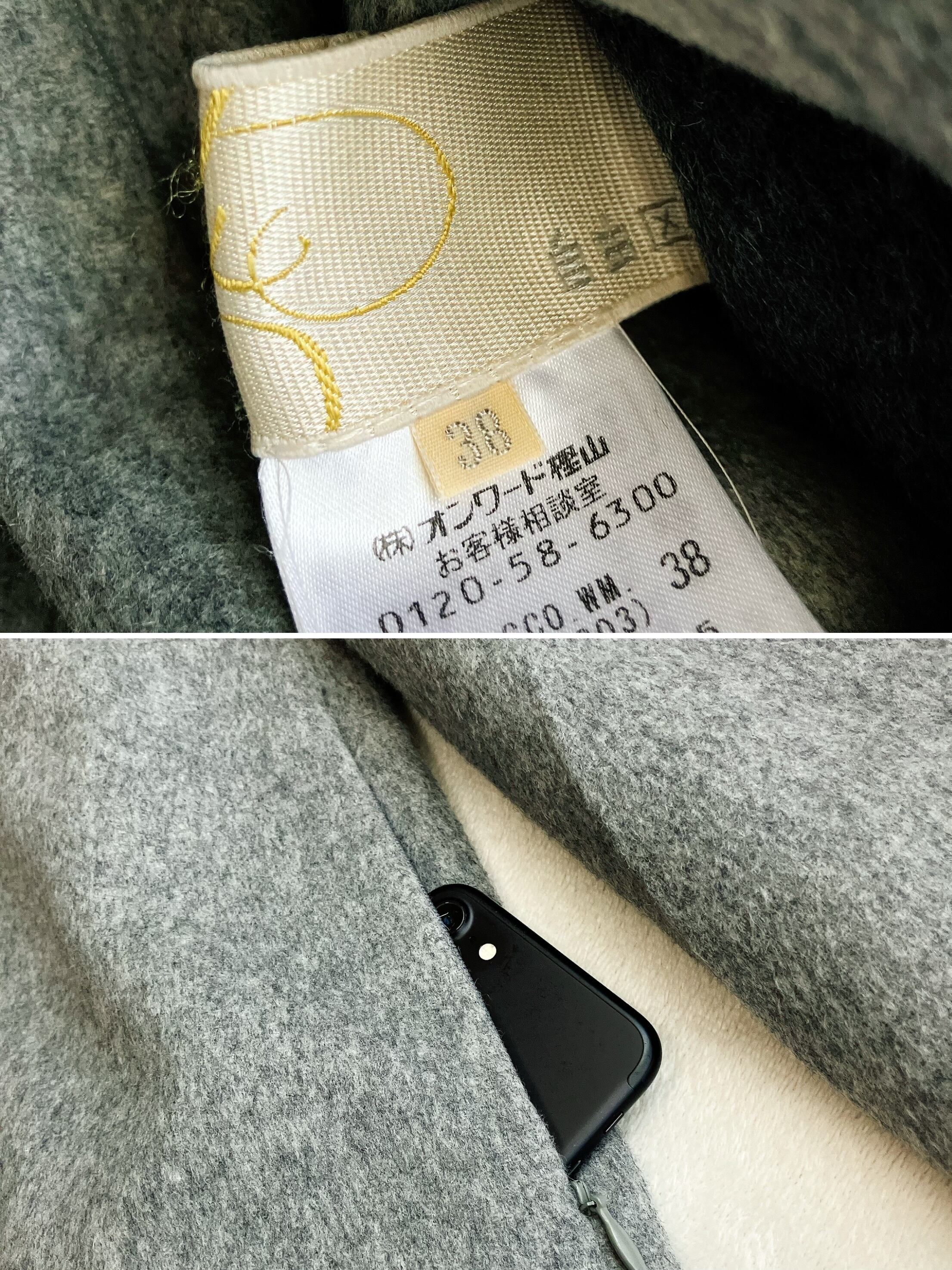 【美品】自由区★カシミヤ ウール ダブルフェイス フーデッド ロングコート Aライン バイカラー トグルボタン グレー×ダークグレー