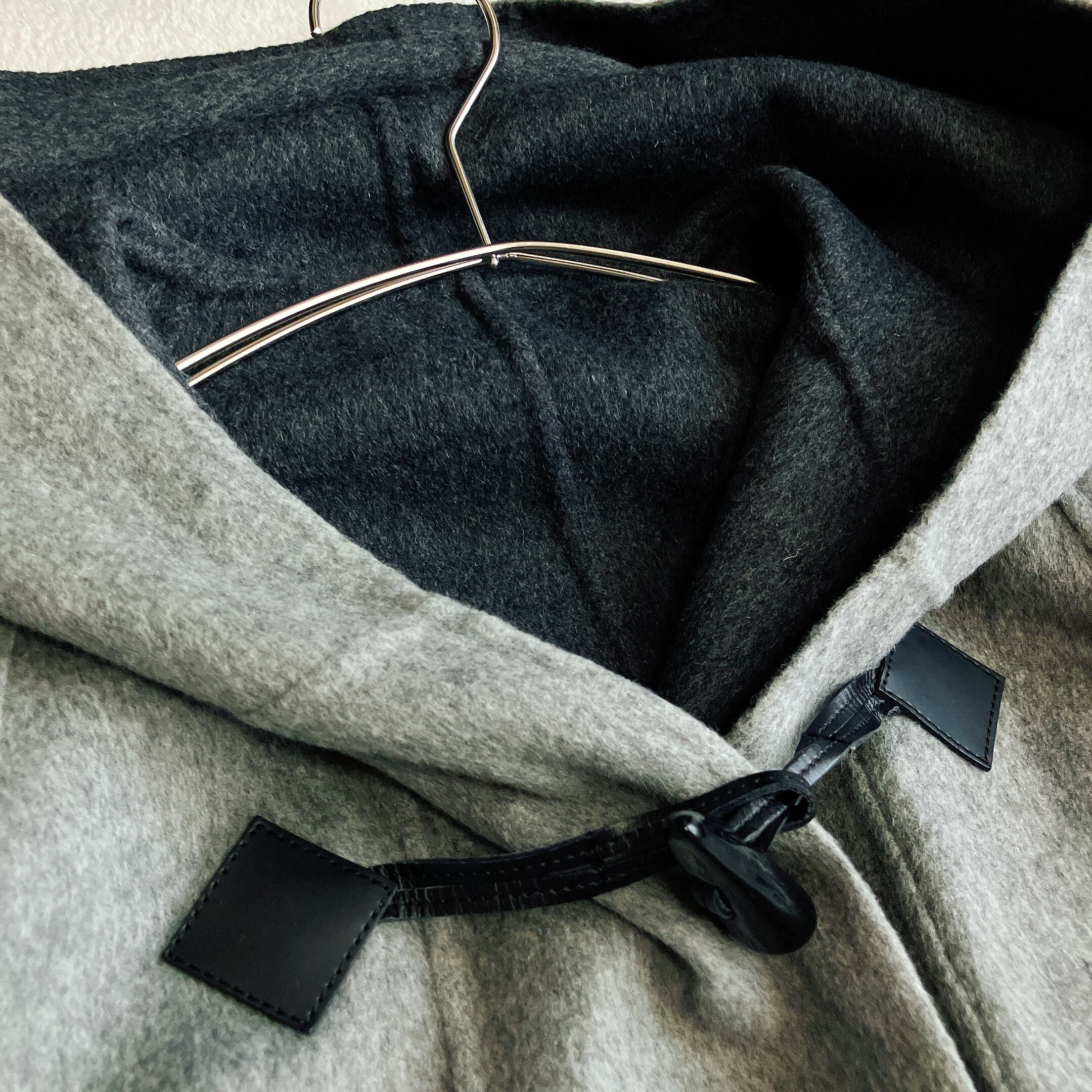 自由区★カシミヤ ウール ダブルフェイス フーデッド ロングコート Aライン バイカラー トグルボタン グレー×ダークグレー