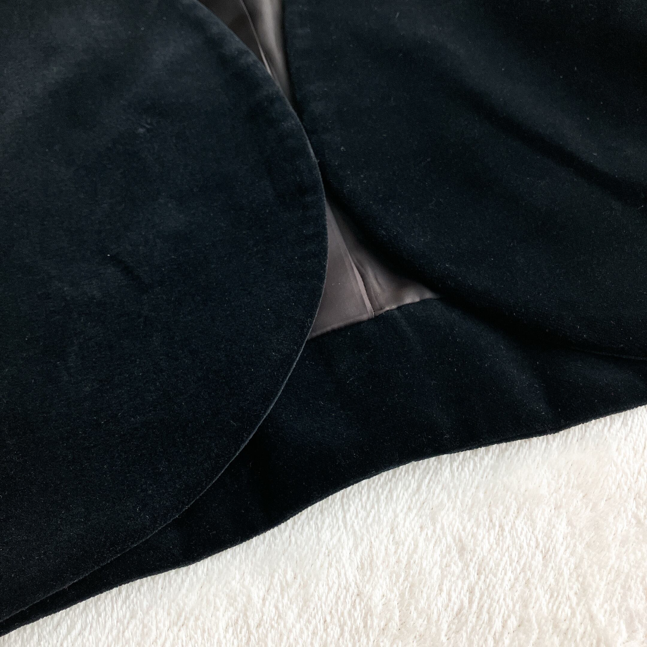 ①前見頃右側に2ミリ程度のベロア生地ハゲがあります。