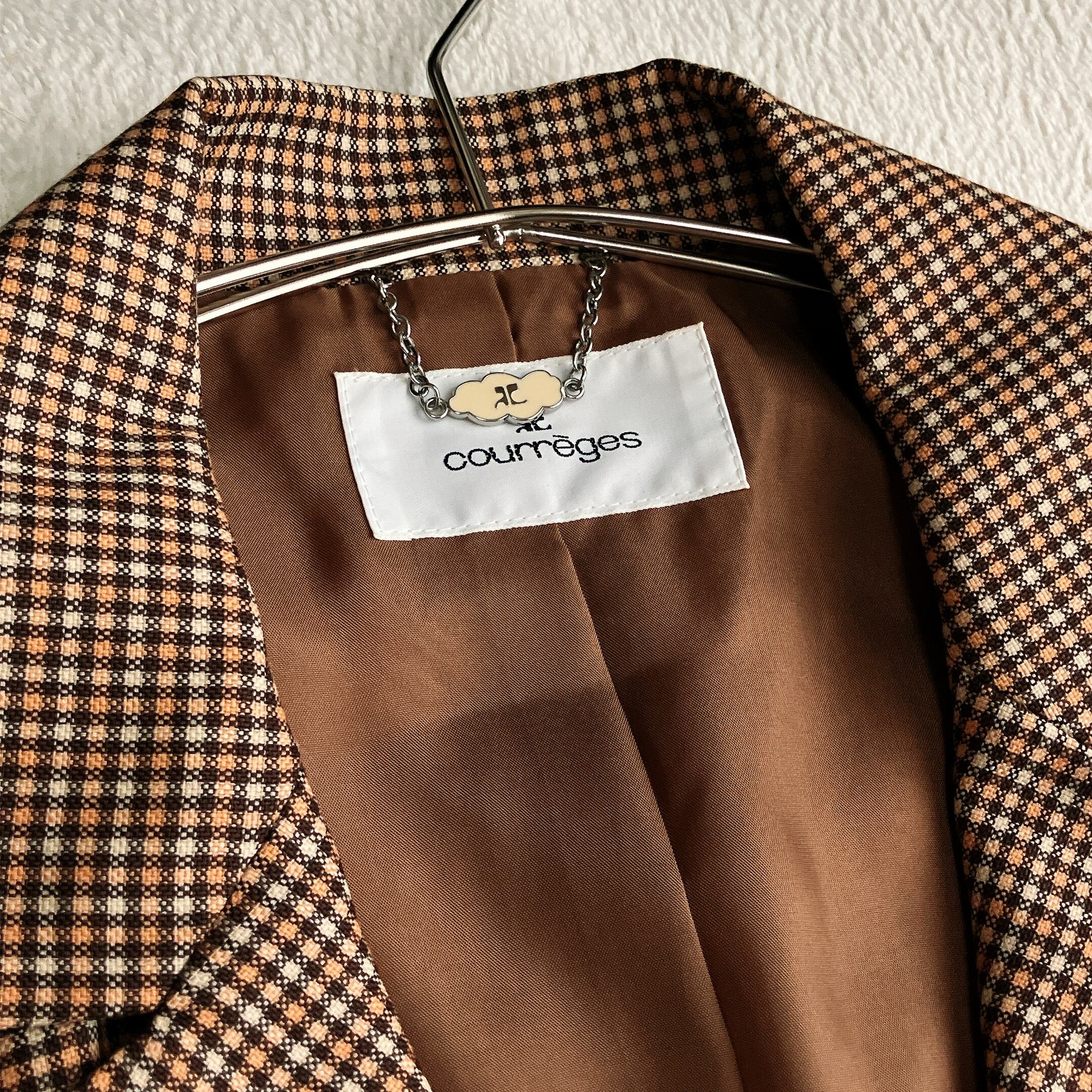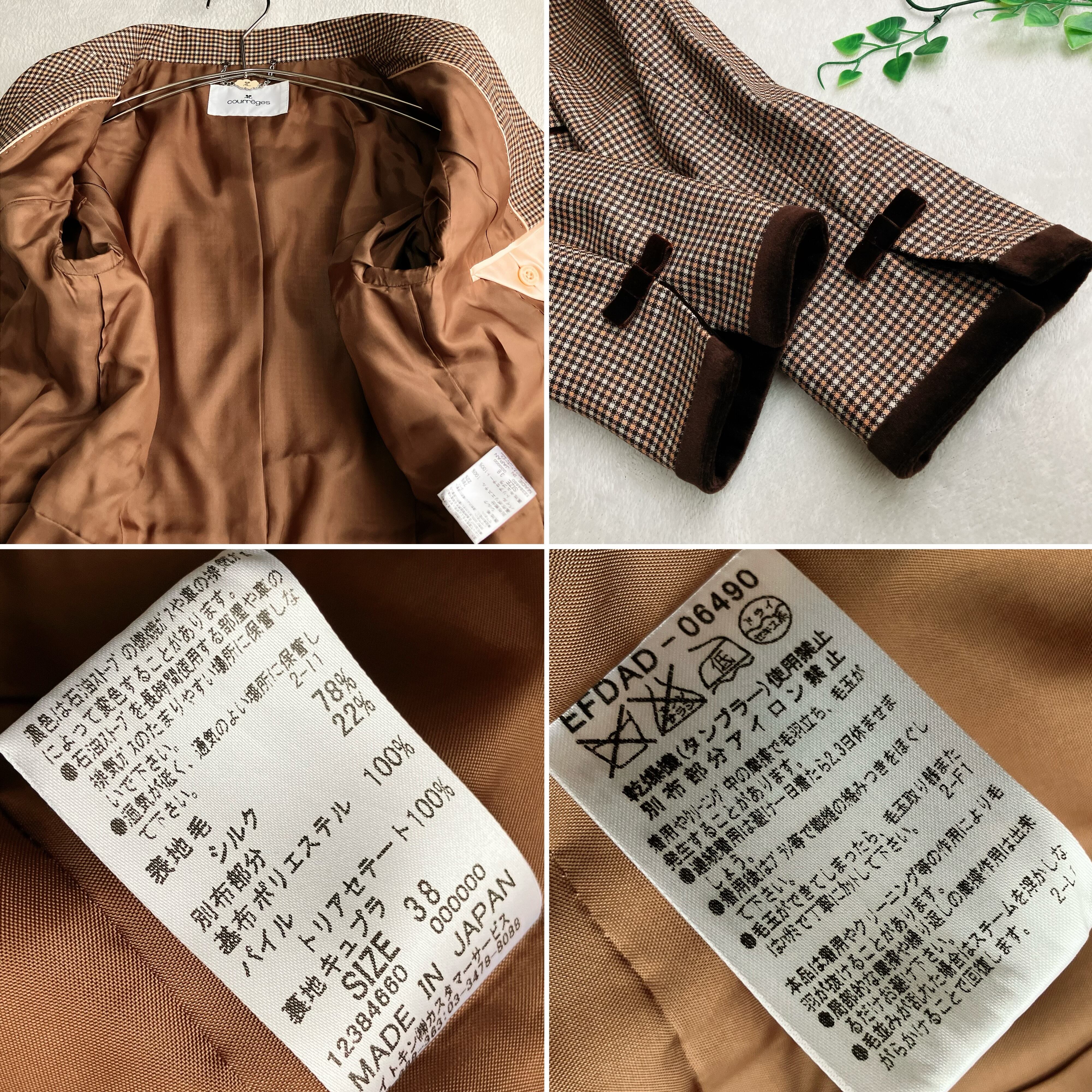 シルク素材ならではのなめらかな質感が魅力のcourreges(クレージュ)スカートスーツ。ブラウン系×マルチのチェック柄がクラシカルで上品な印象を演出します。セレモニーやフォーマル、入学式・卒業式、結婚式などのオケージョンシーンにも映える一着です。