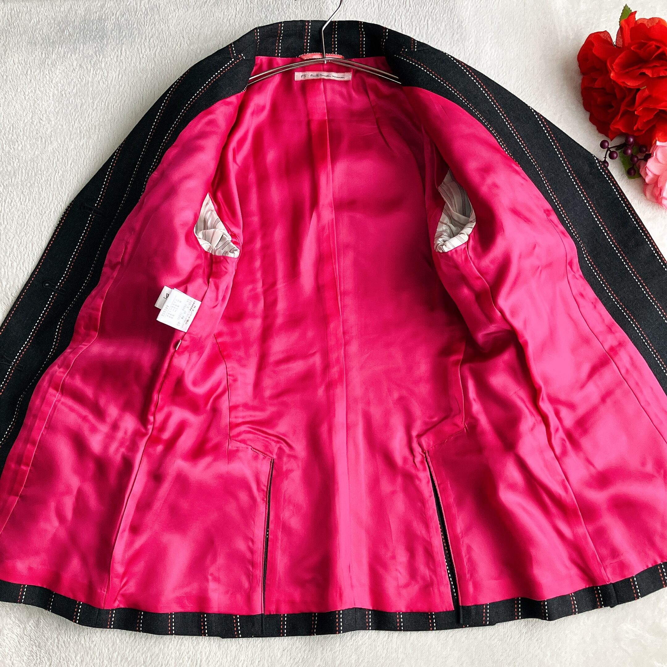 ポールスミス Paul Smith★パンツスーツ ピンク裏地 ウール セットアップ ストライプ 3B ワイドパンツ ダークグレー×ピンク×ホワイト