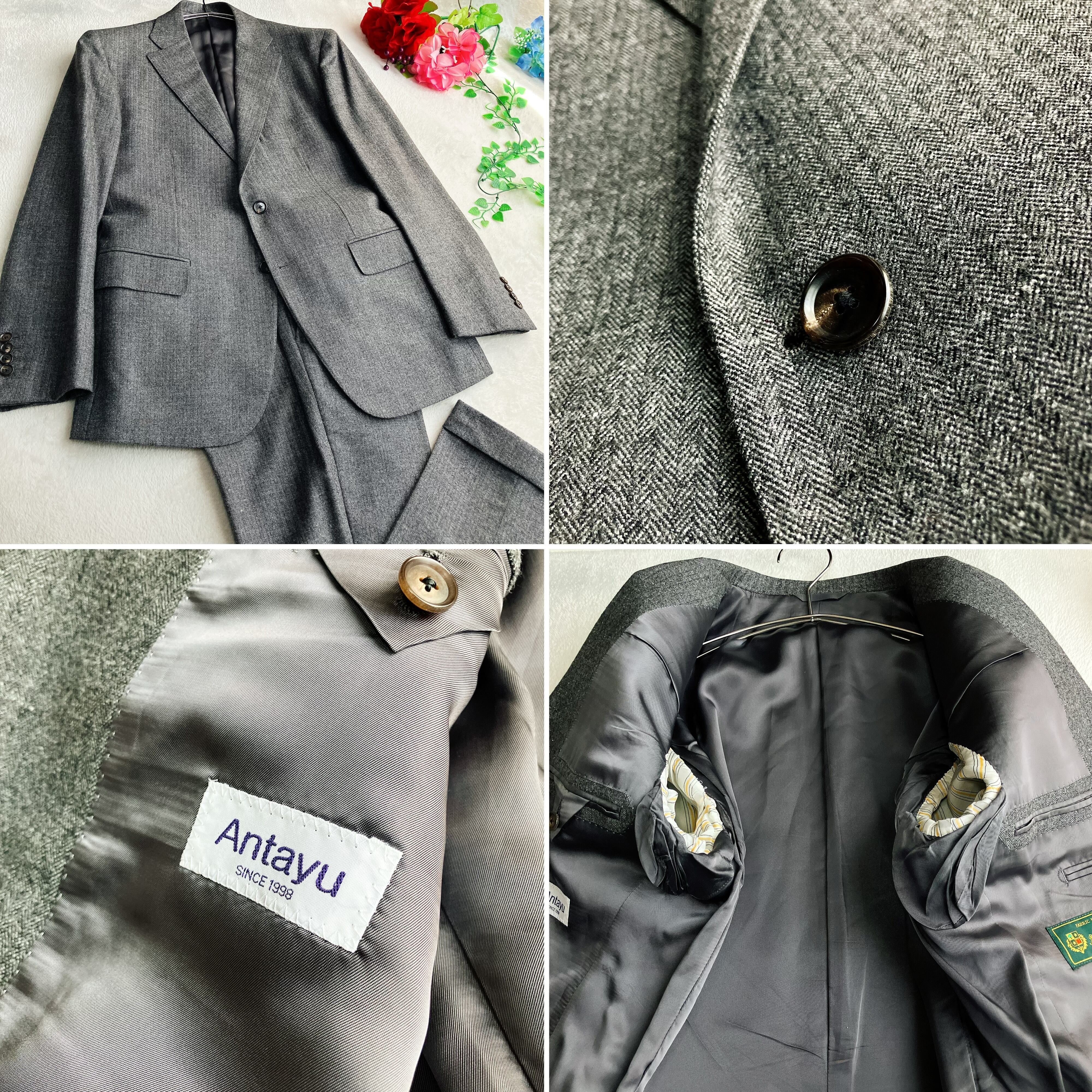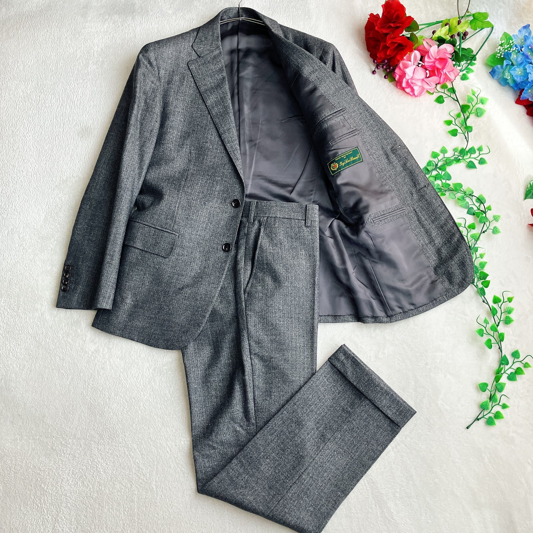 Loro Piana ロロピアーナ/Antayu★緑タグ ヘリンボーン シングル スーツ セットアップ 2B 裾ダブル グレー系