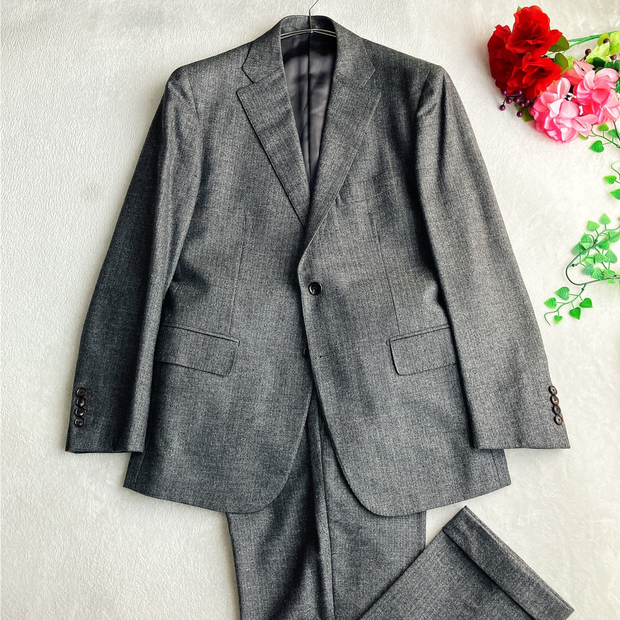 世界最高峰の生地メーカーとして名高いロロピアーナ“緑タグ"の生地を使用した高級スーツ。上質ウールならではのしなやかさと滑らかな肌触りが魅力です。ヘリンボーン織りがさりげない立体感を演出し、ビジネススーツとしてはもちろん、フォーマルやセレモニーシーンにも活躍します。