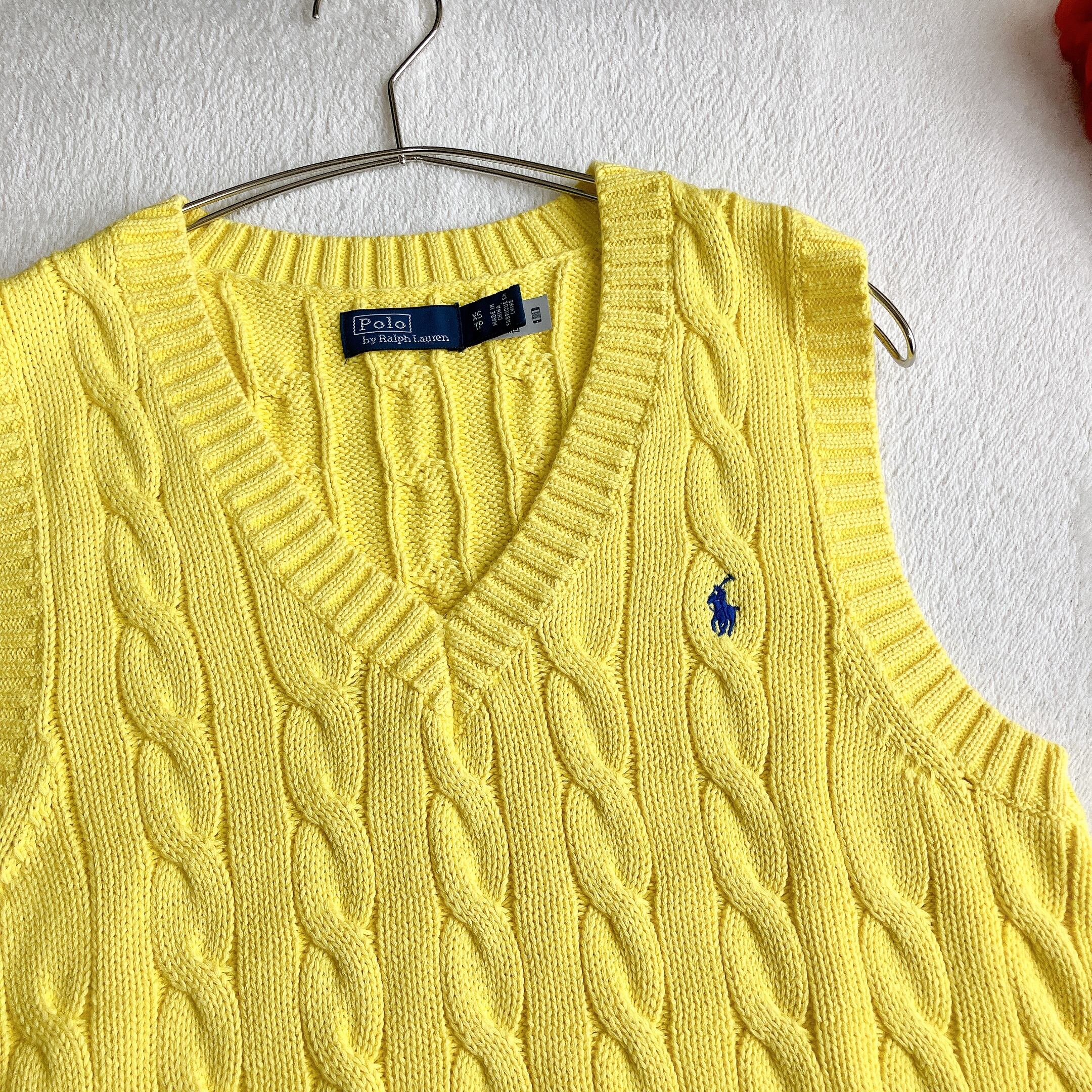 POLO RALPH LAUREN ポロラルフローレン★ケーブルニット ベスト Vネック イエロー