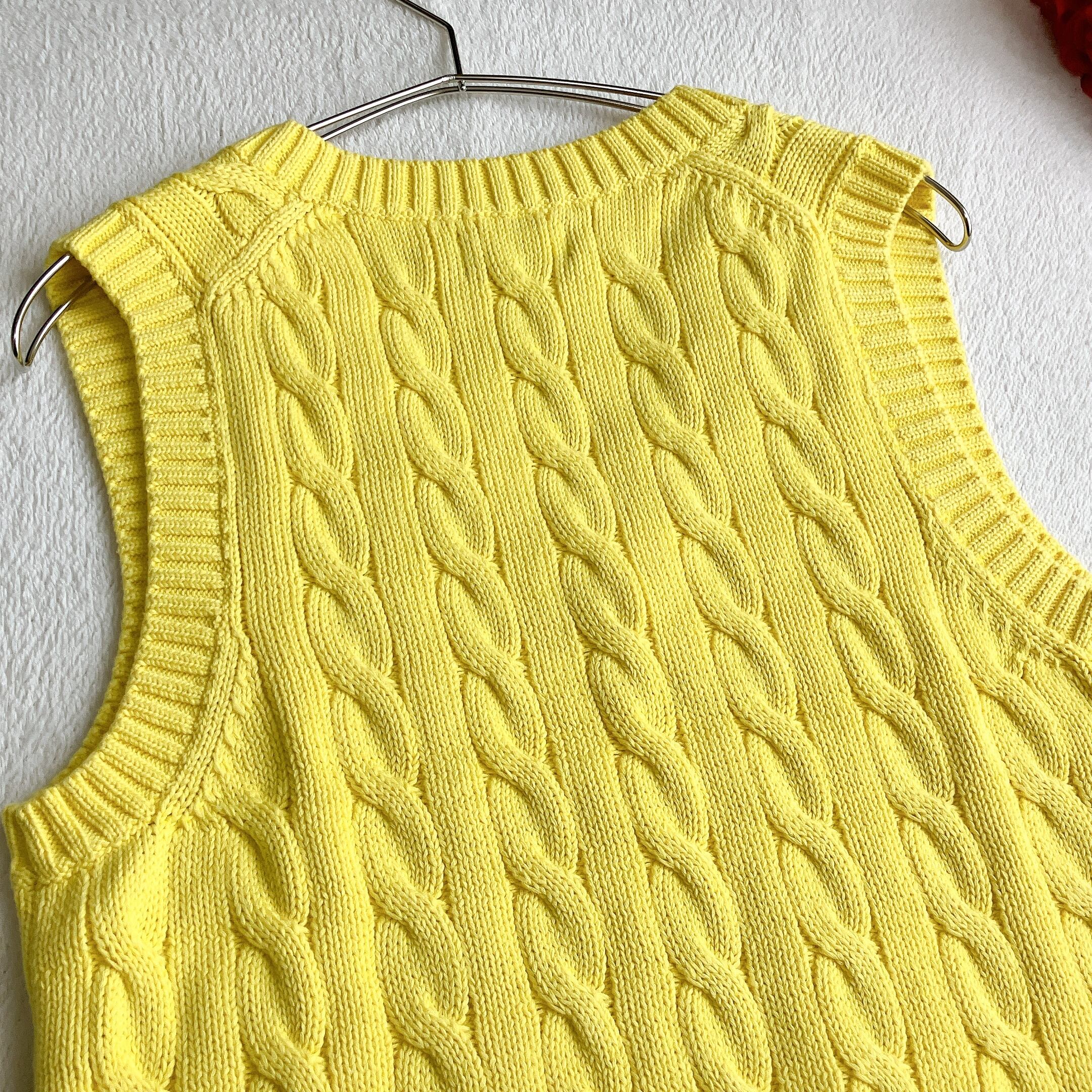 【現行QRタグ】【極美品】POLO RALPH LAUREN ポロラルフローレン★ケーブルニット ベスト Vネック イエロー【洗える】