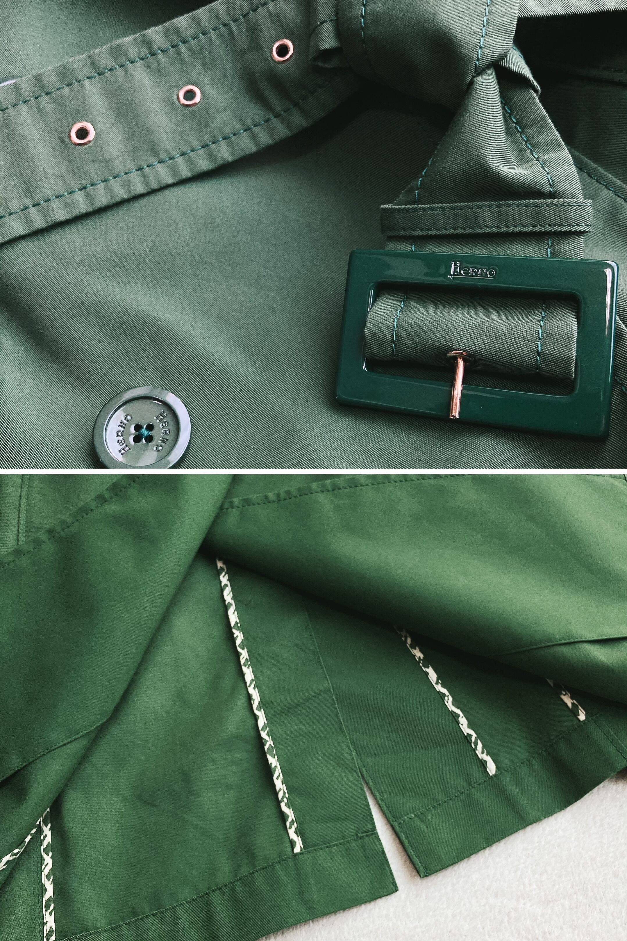 落ち着きのあるグリーン系カラーが秋冬・春先コーデのアクセントに。ベーシックカラーとは一味違う、大人のための差し色アウターです。デニムやワンピースとも相性抜群で、きれいめにもカジュアルにも着回し可能な万能トレンチコートです。