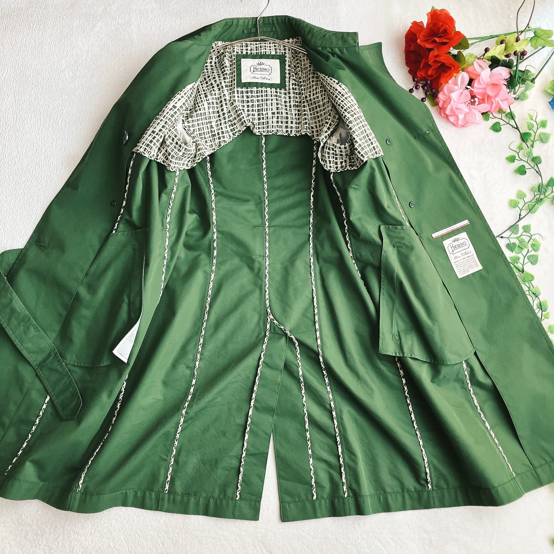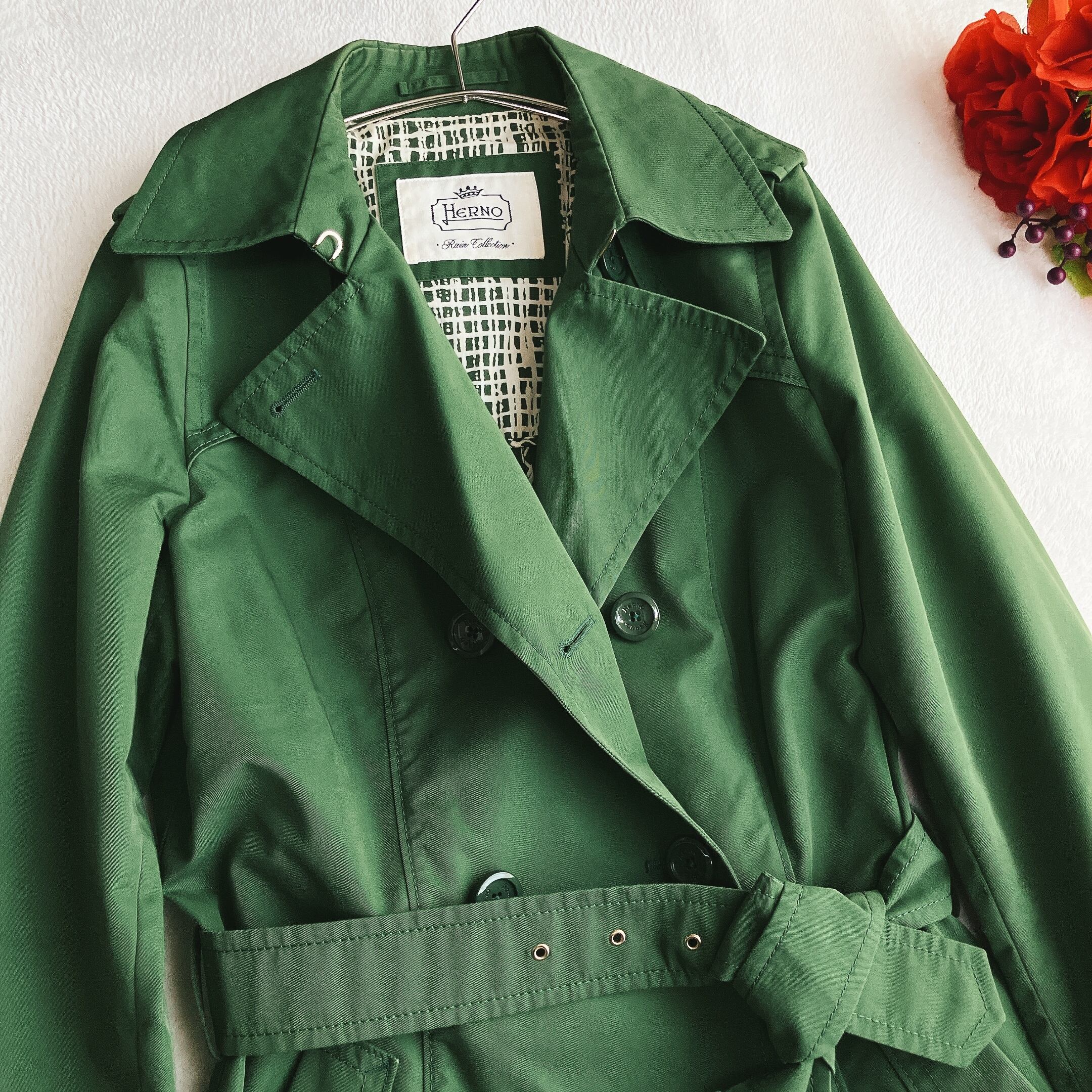 【美品】ヘルノ HERNO★ダブル トレンチコート Aライン ベルト付き ロゴボタン イタリア製 グリーン系