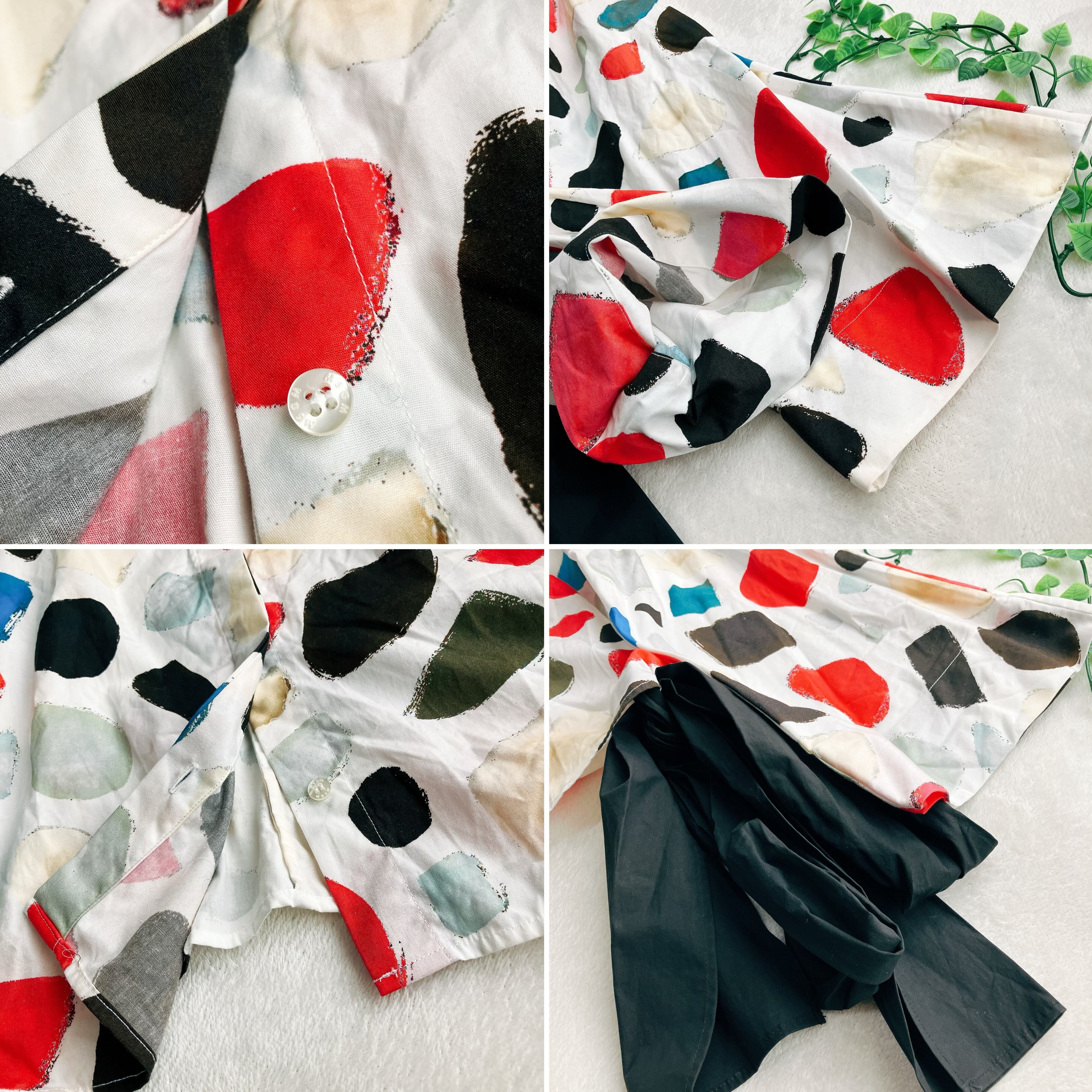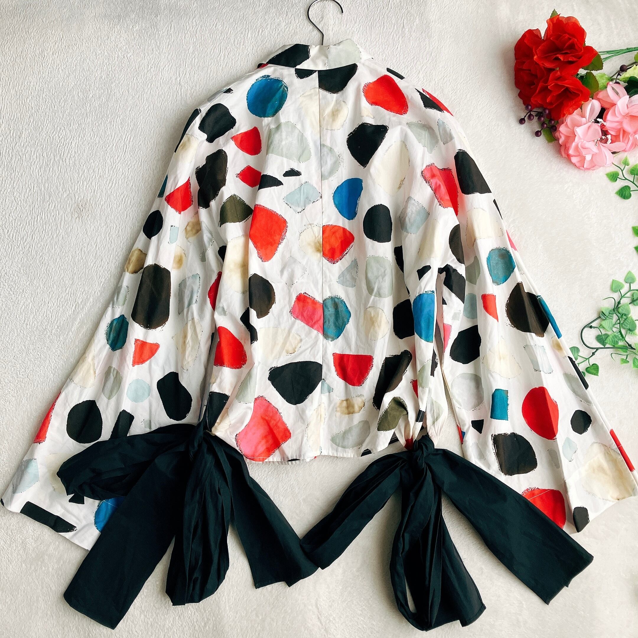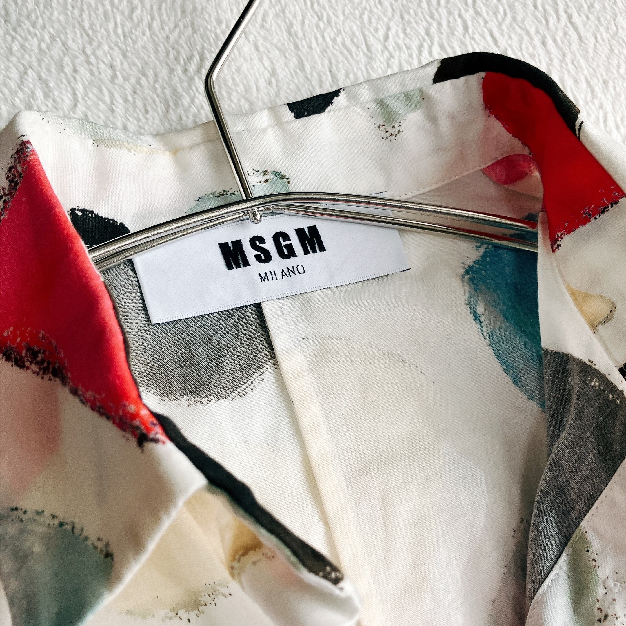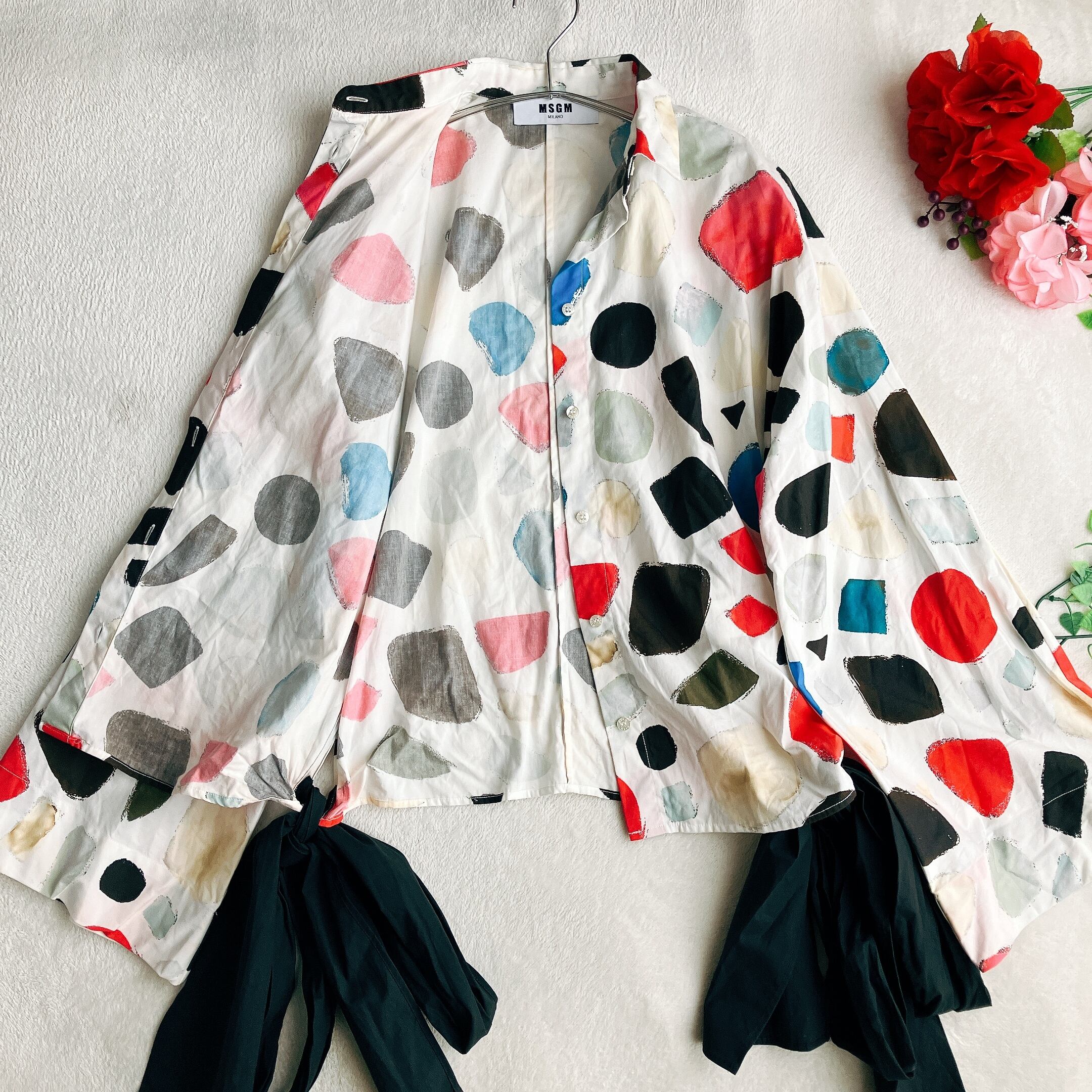 【美品】MSGM エムエスジーエム★総柄 アート柄 フレアスリーブ ビッグシルエット シャツ リボン 比翼ボタン 長袖 マルチカラー