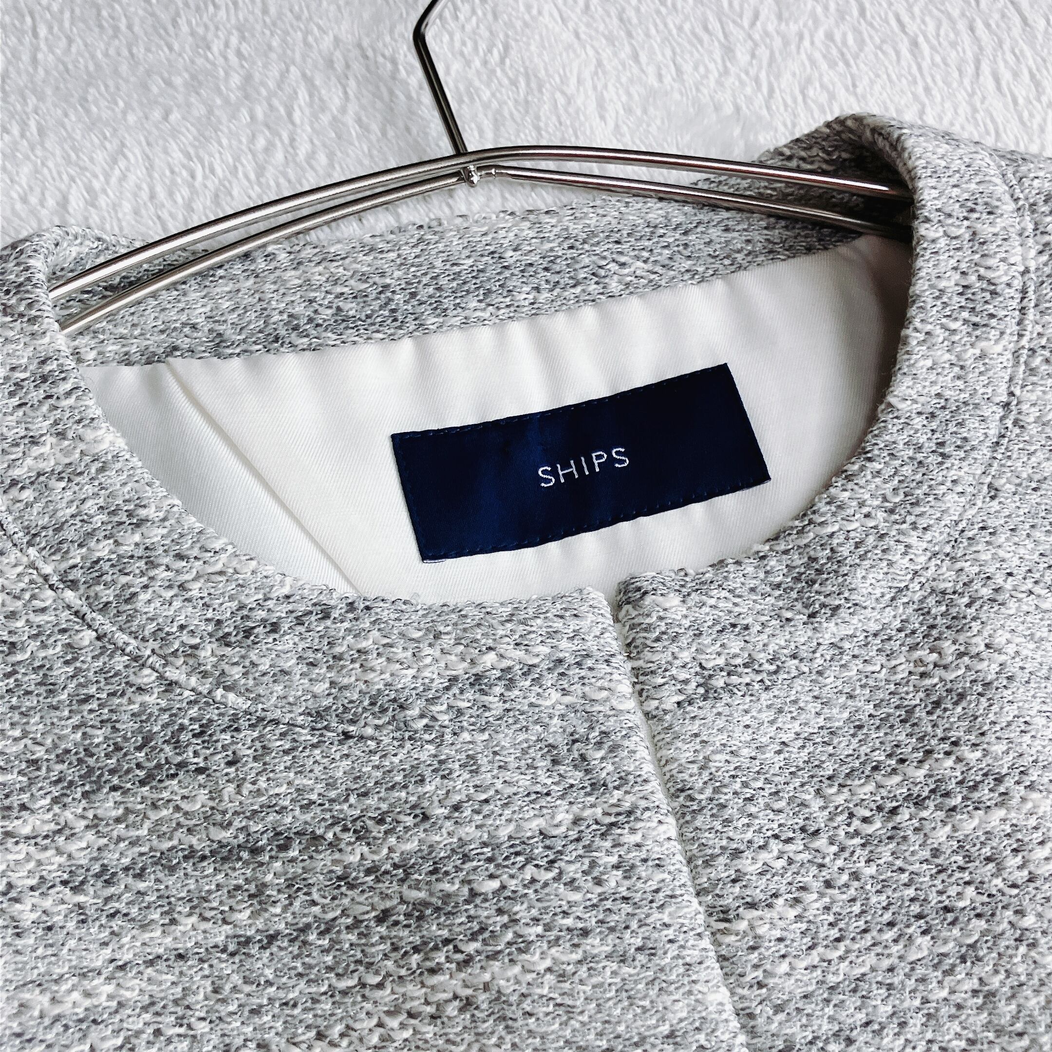 Mapel×SHIPS マペル×シップス★ノーカラー スカートスーツ スライバーニット ツイード イタリア生地 セレモニースーツ ライトグレー系