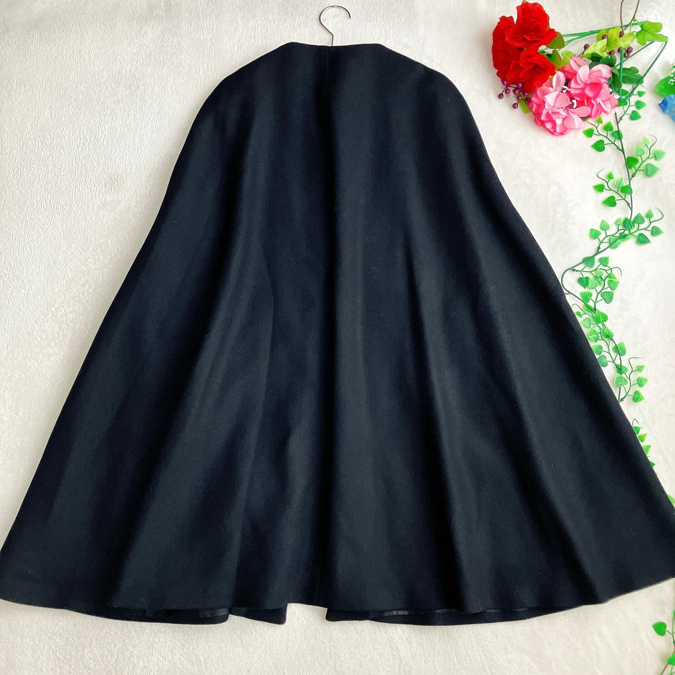 フロントのトグルボタンがさりげないアクセントになり、シンプルながらも洗練された印象に。パンツスタイルはもちろん、スカートやワンピースとも好相性。ブラックのロングケープは流行に左右されず長く愛用できるアウターとしておすすめです。