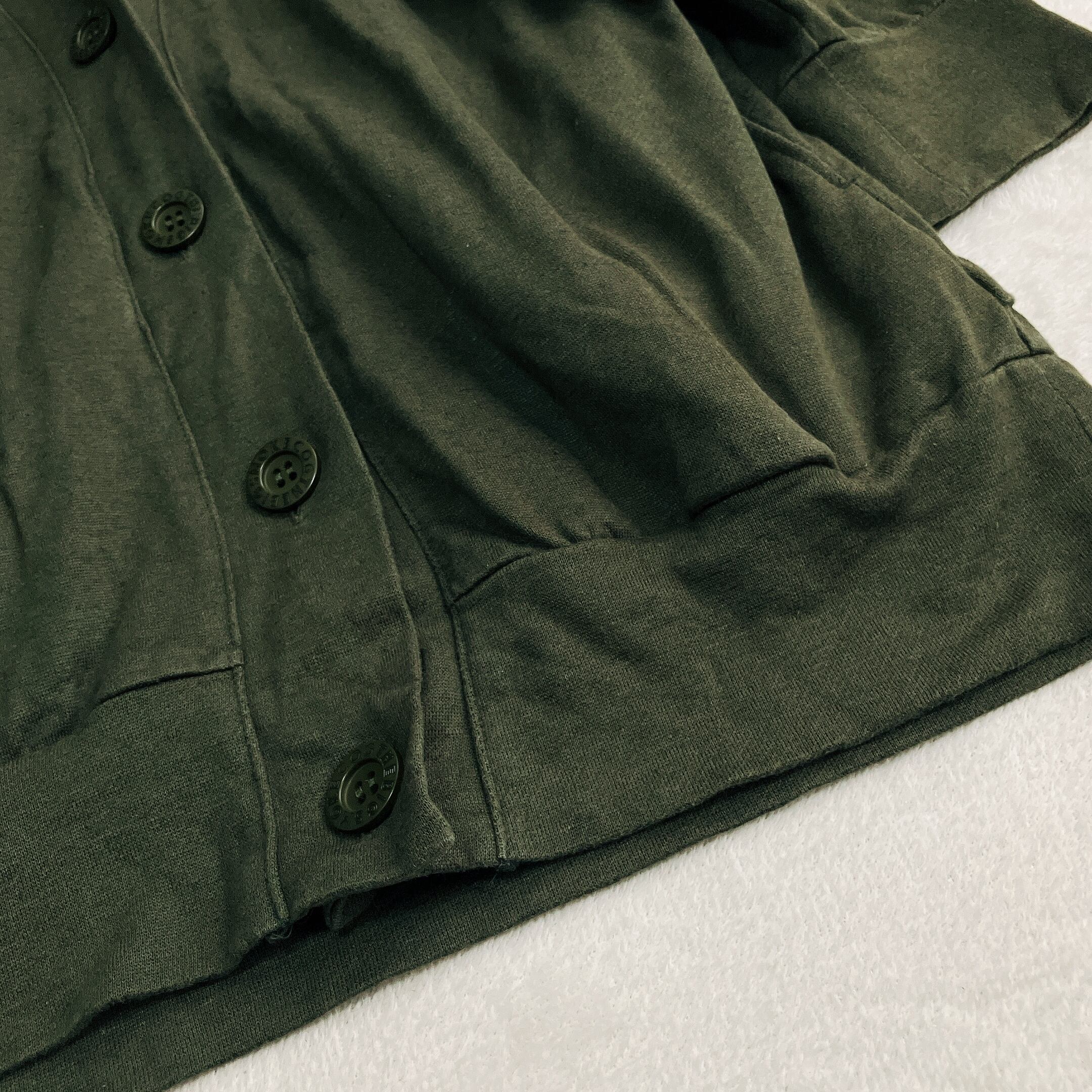 【美品】【手洗い可】COGTHEBIGSMOKE コグザビッグスモーク★リネン カーディガン ドロップショルダー Vネック ビッグシルエット カーキ系