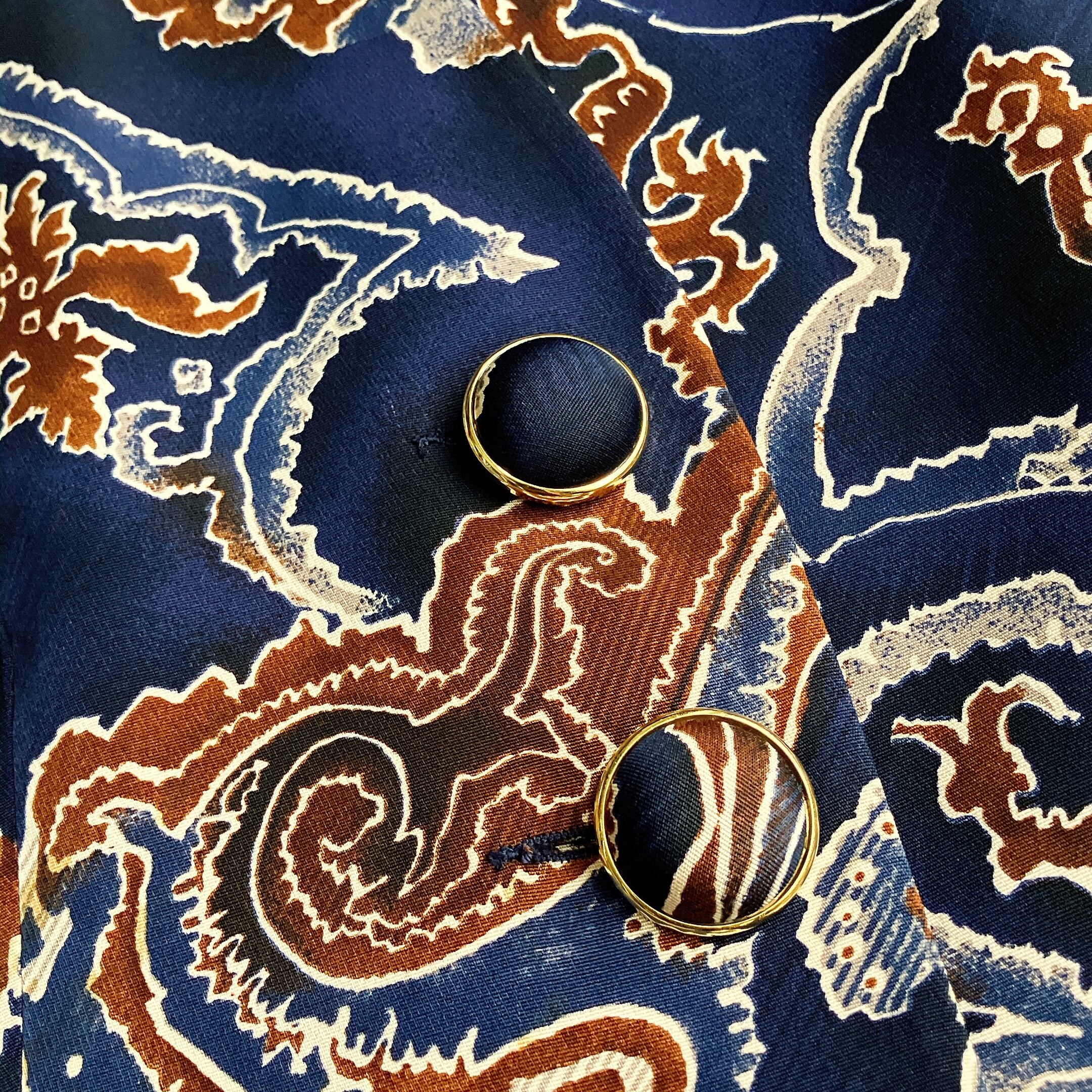 ネイビーをベースにしたペイズリー調の総柄デザインが印象的。シンプルなパンツやデニムと合わせるだけでおしゃれに決まる、大人エレガントな柄ジャケットです。