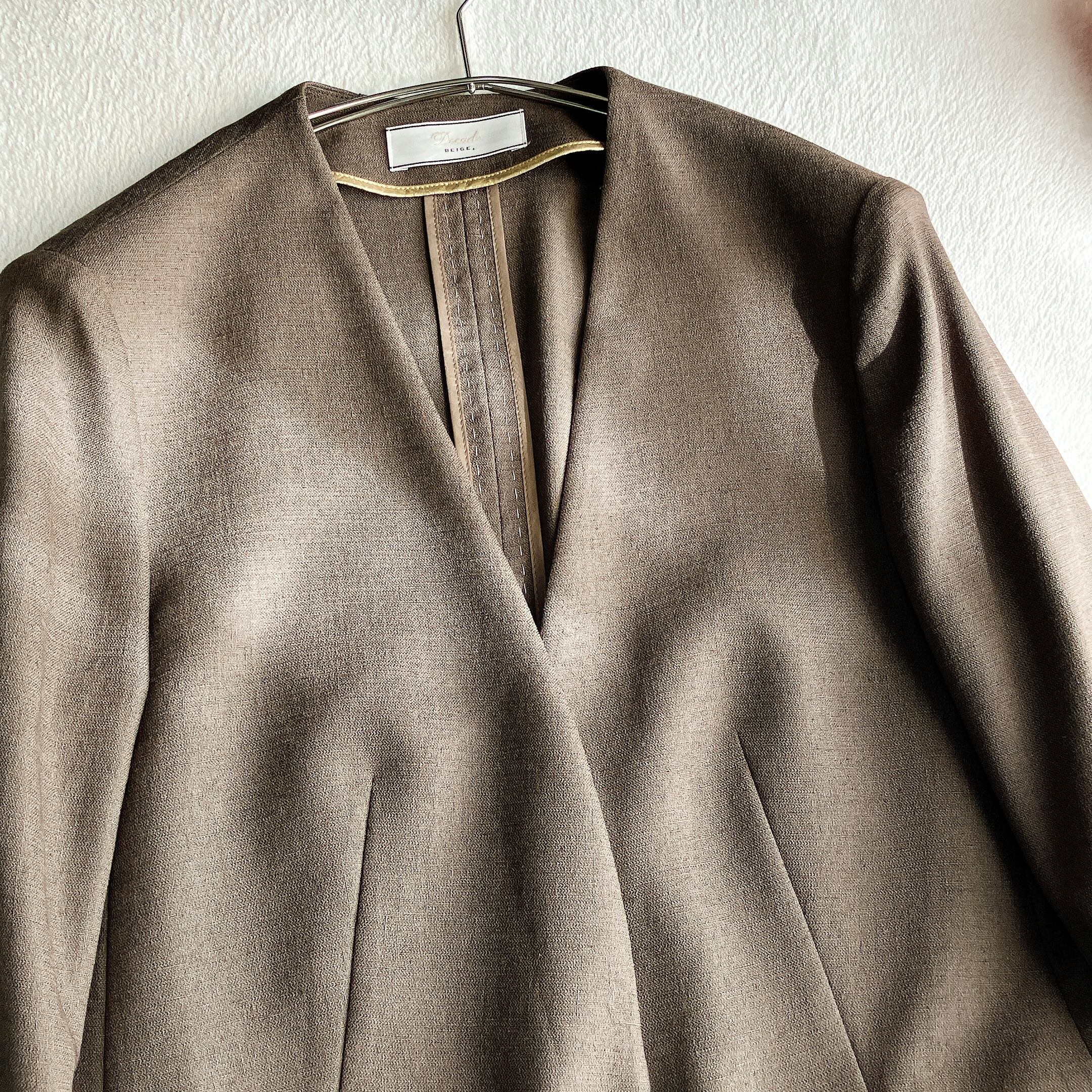 【25SS/現行品】 BEIGE, Decade ベイジ ディケイド★CAROLE キャロル ノーカラージャケット ストレッチ Vネック モカ【極美品/手洗い可】