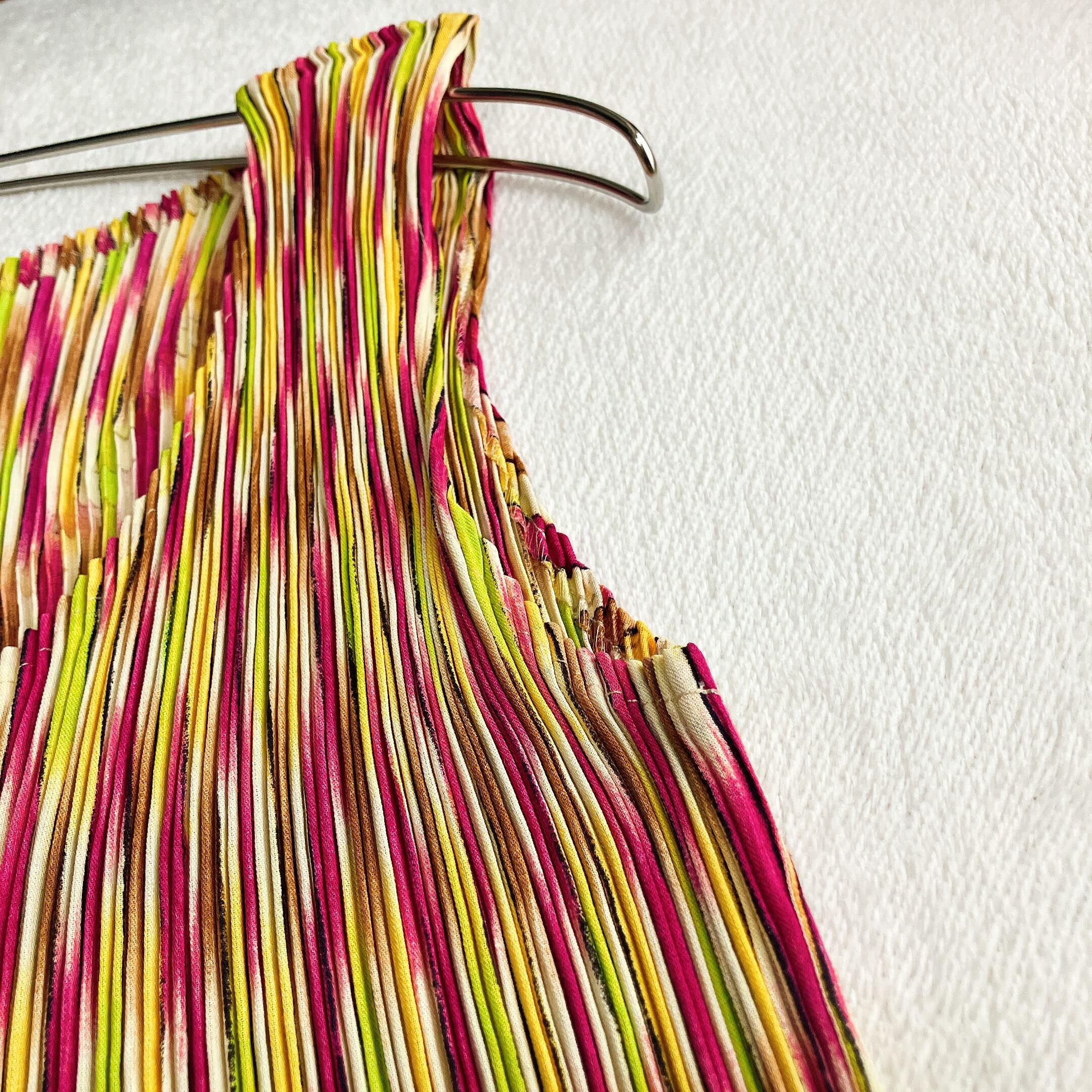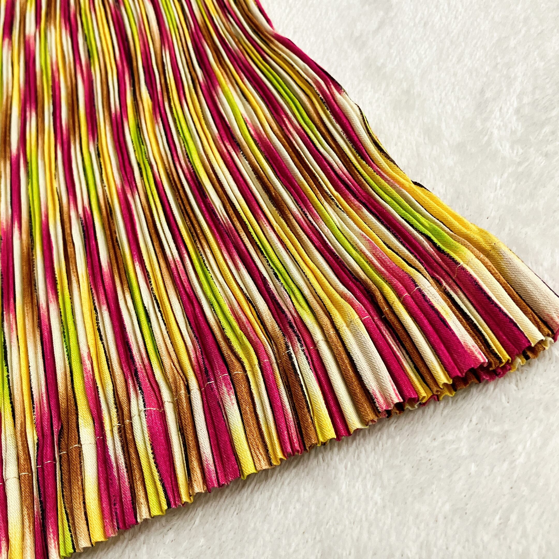 イッセイミヤケ ISSEY MIYAKE★プリーツ 総柄 ノースリーブカットソー ストライプ マルチカラー