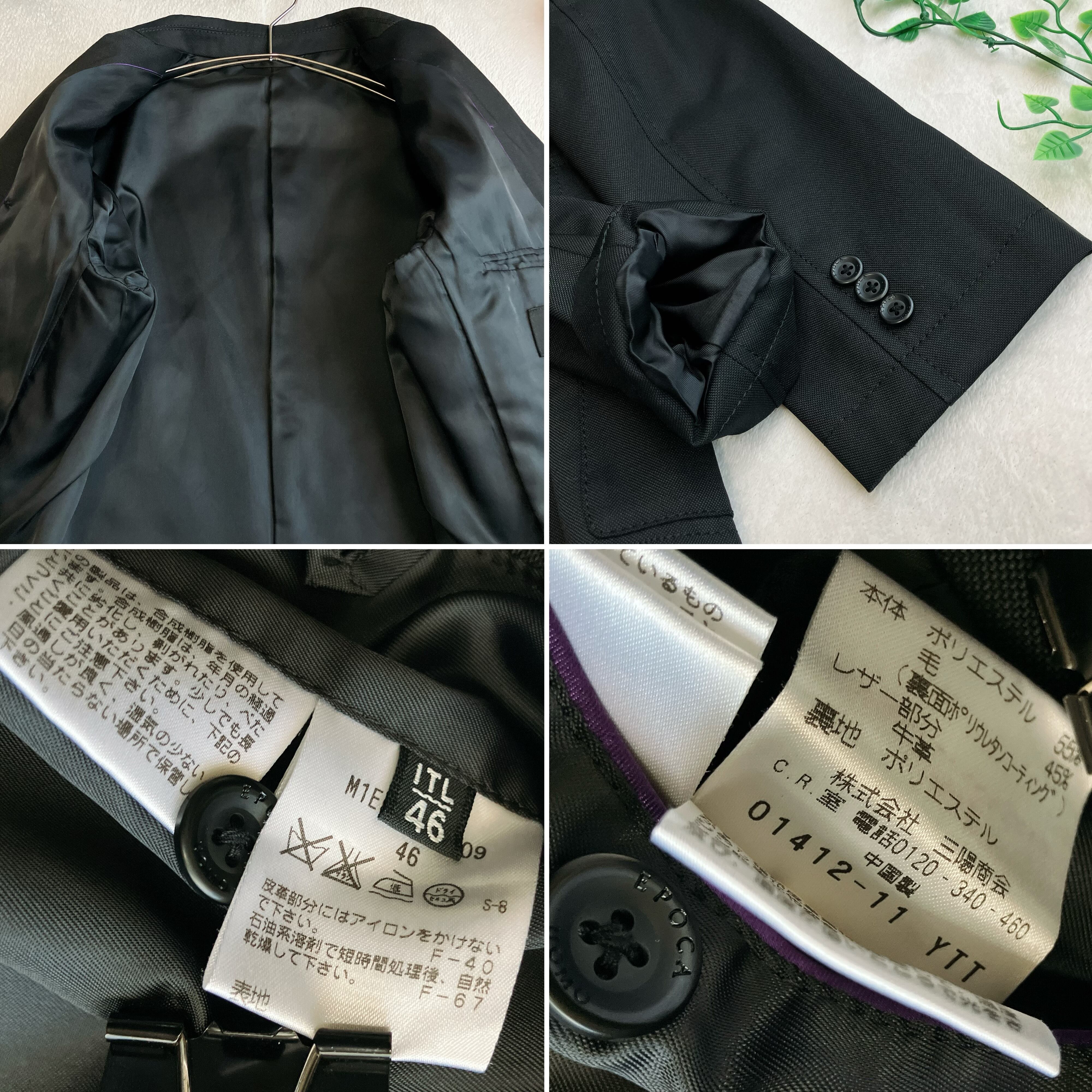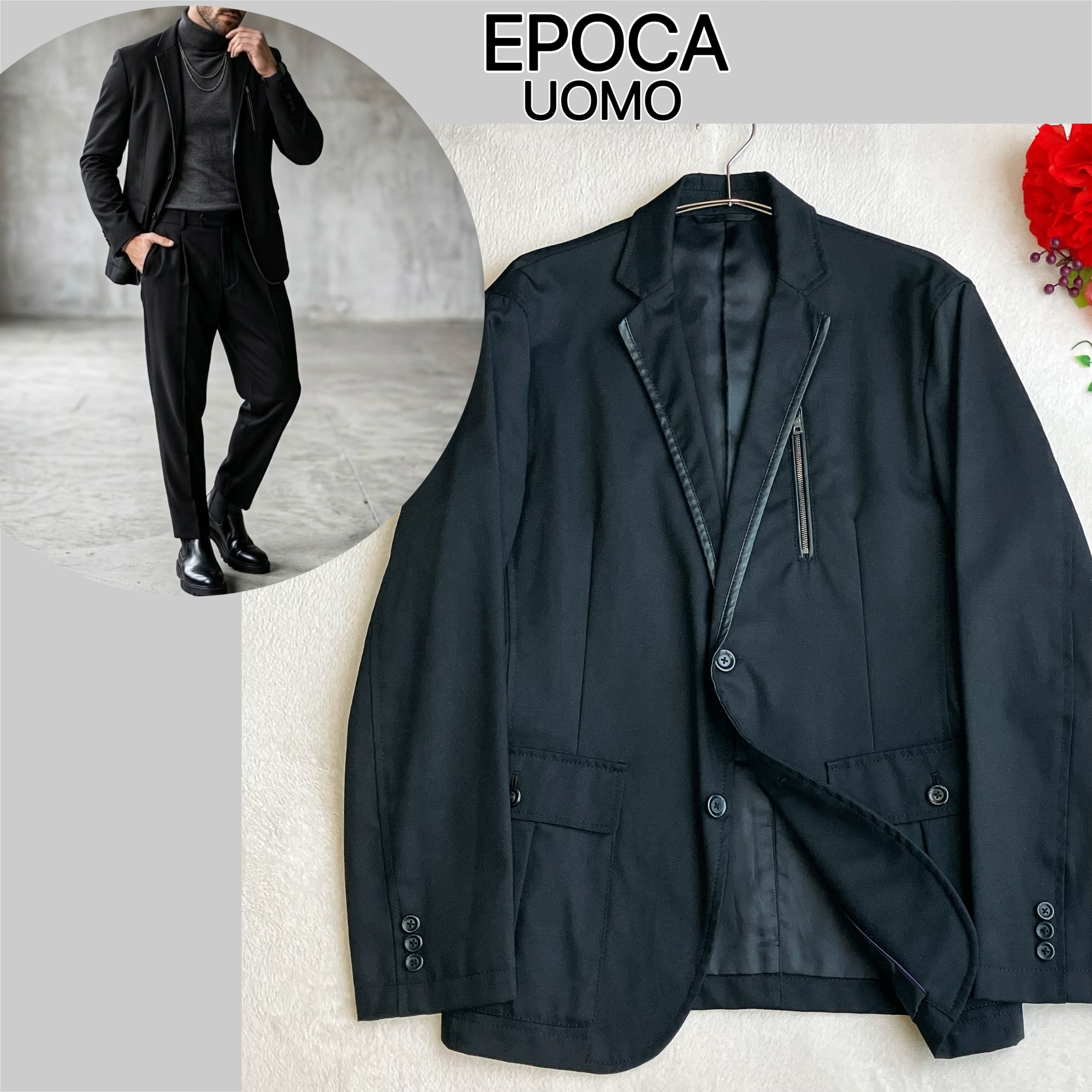 【美品】EPOCA UOMO エポカウォモ★レザー切替え ホップサック テーラードジャケット 2B アンコンジャケット ブラック