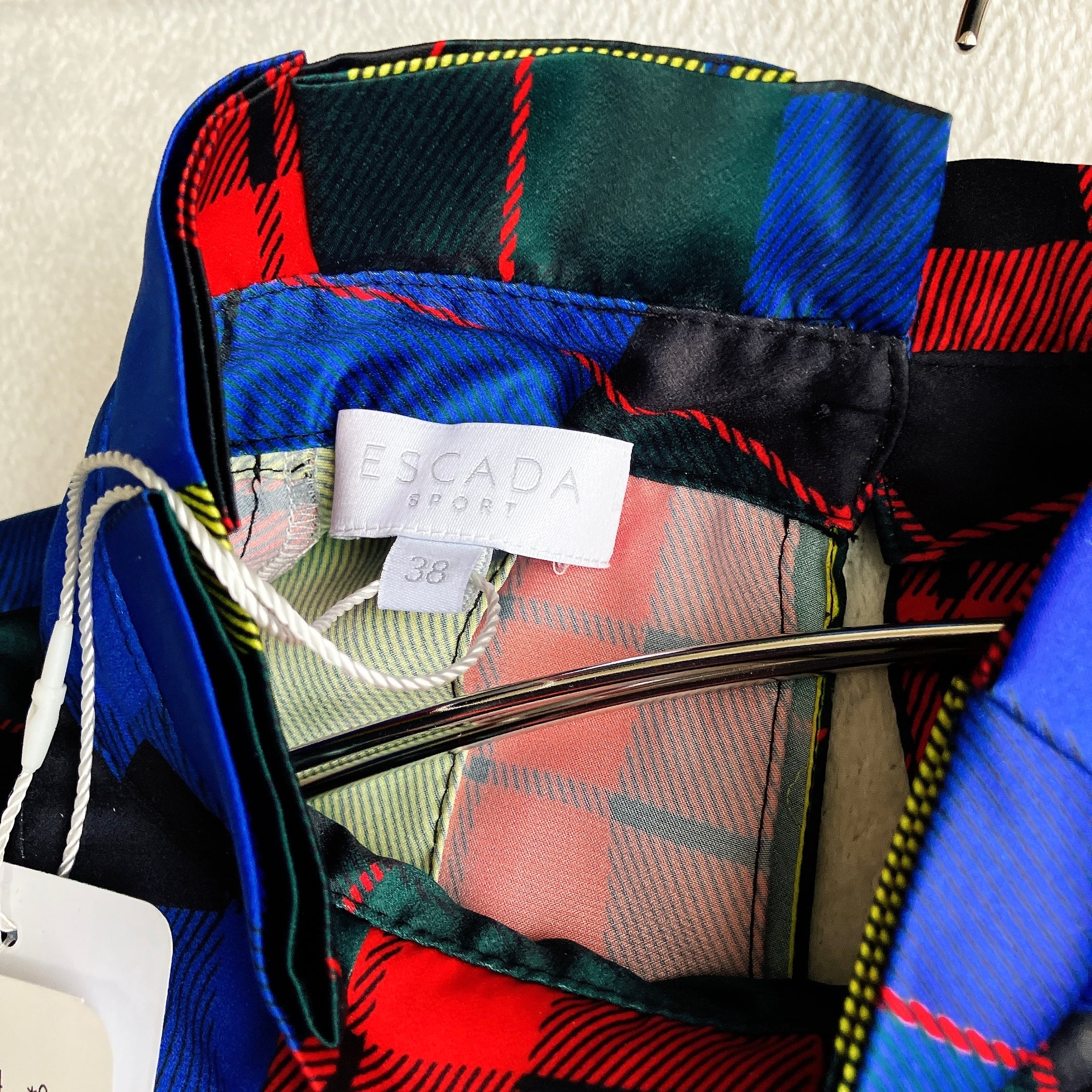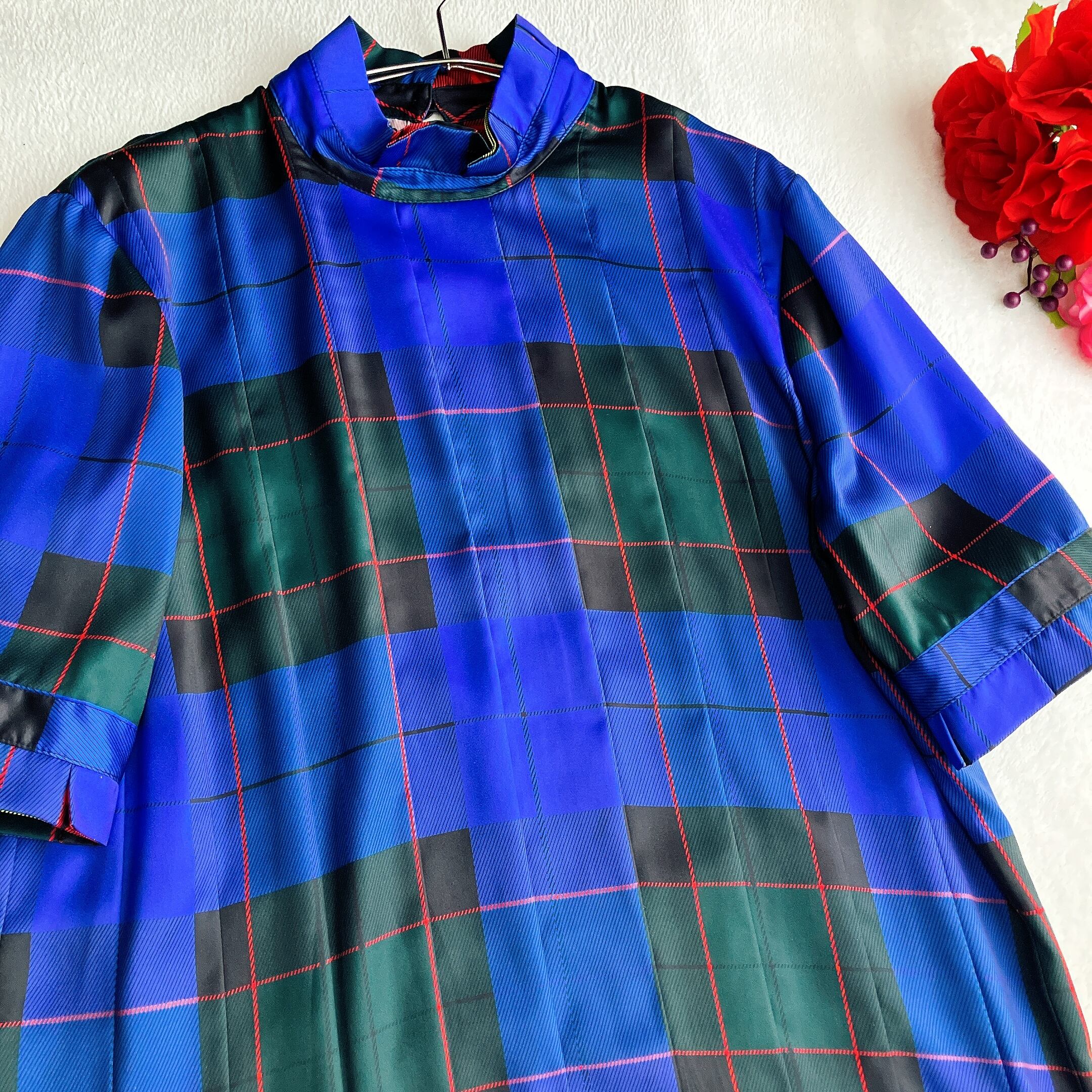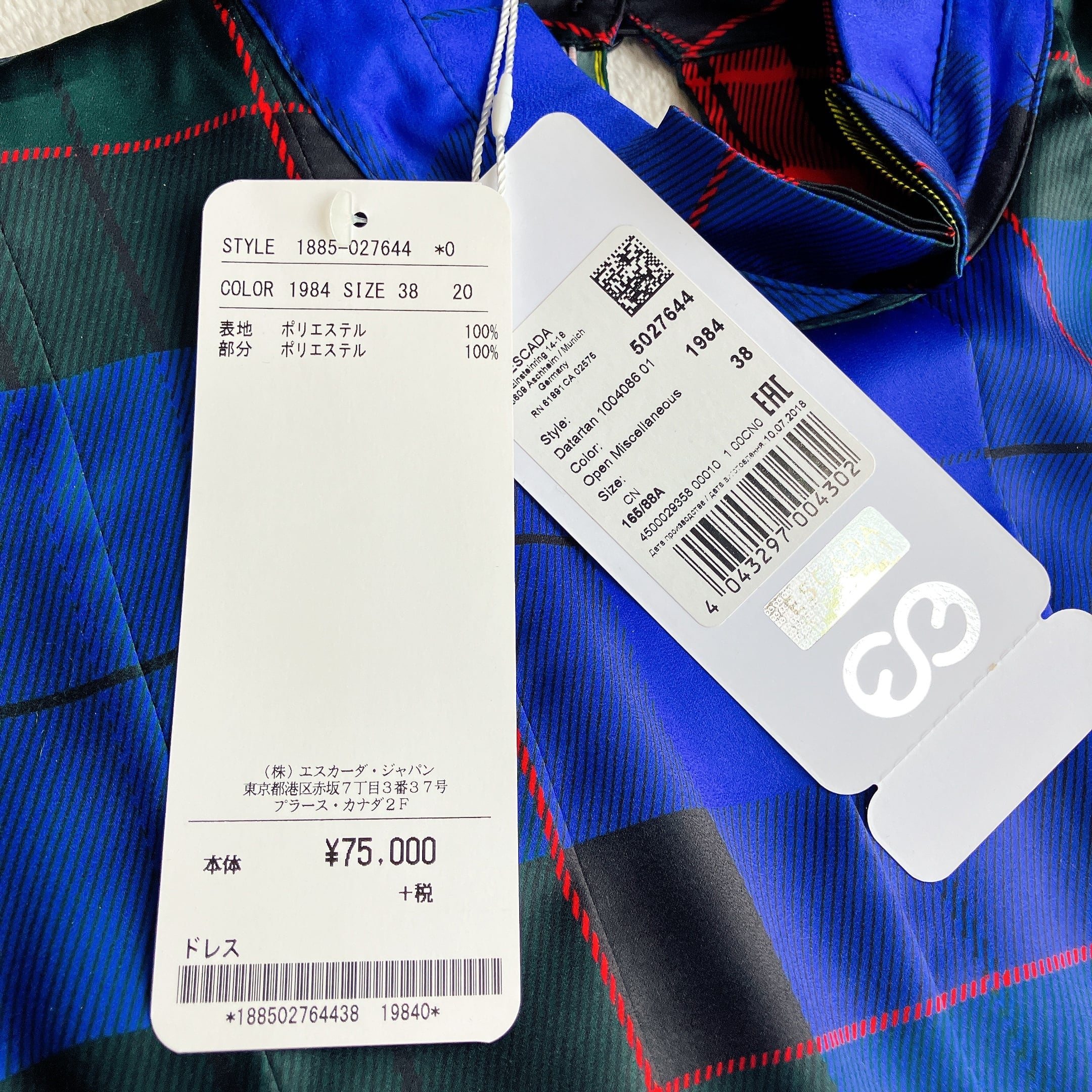 【未使用タグ付き/洗える】ESCADA エスカーダ★マーメイド ワンピース ロングドレス プリーツ切替え ハイネック タータンチェック マルチ