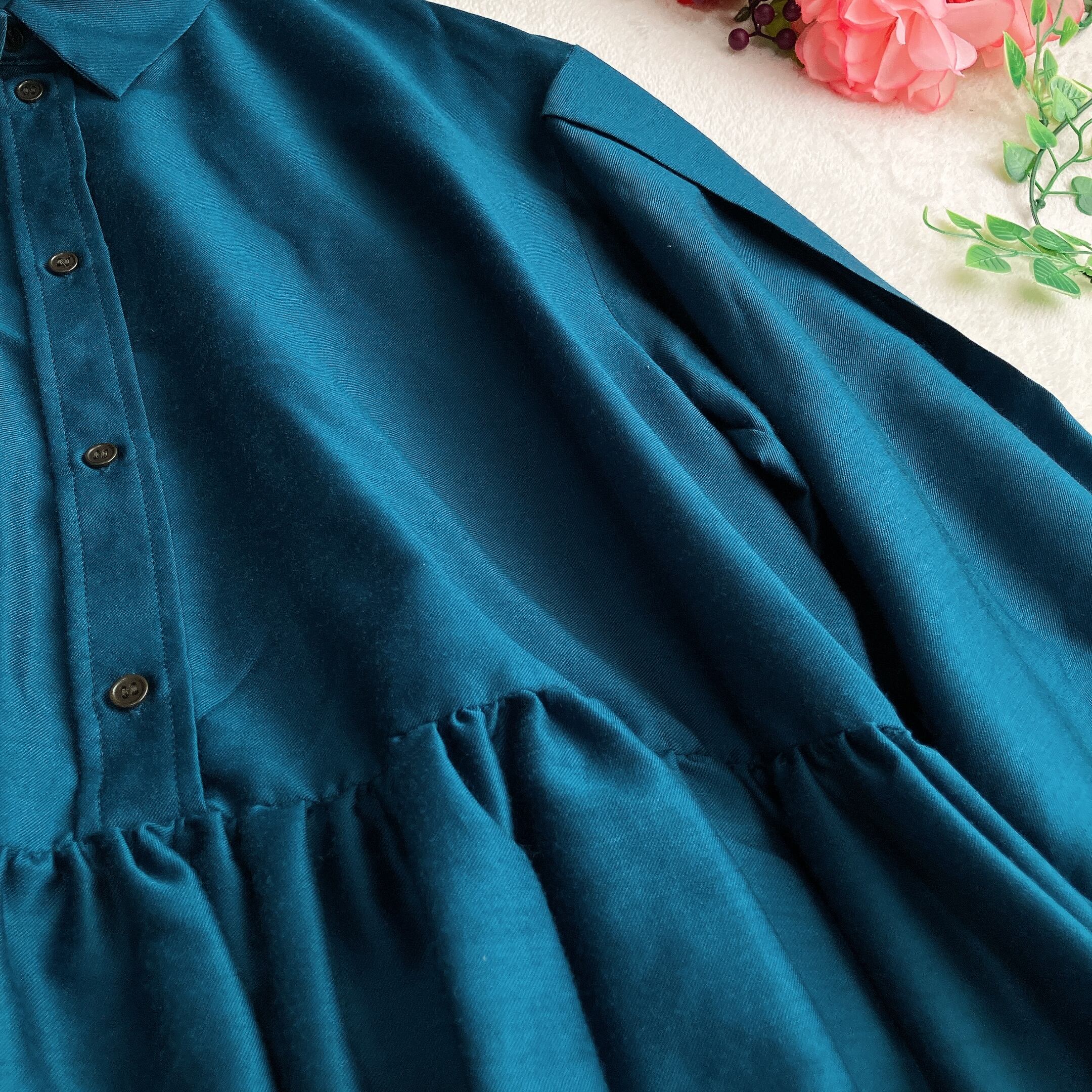 落ち着いたダークブルーがきれいめにもカジュアルにも合わせやすく、デニムやスラックスとも好相性。手洗い可でお手入れ簡単、通勤・オフィスカジュアル・デイリー使いにおすすめです。