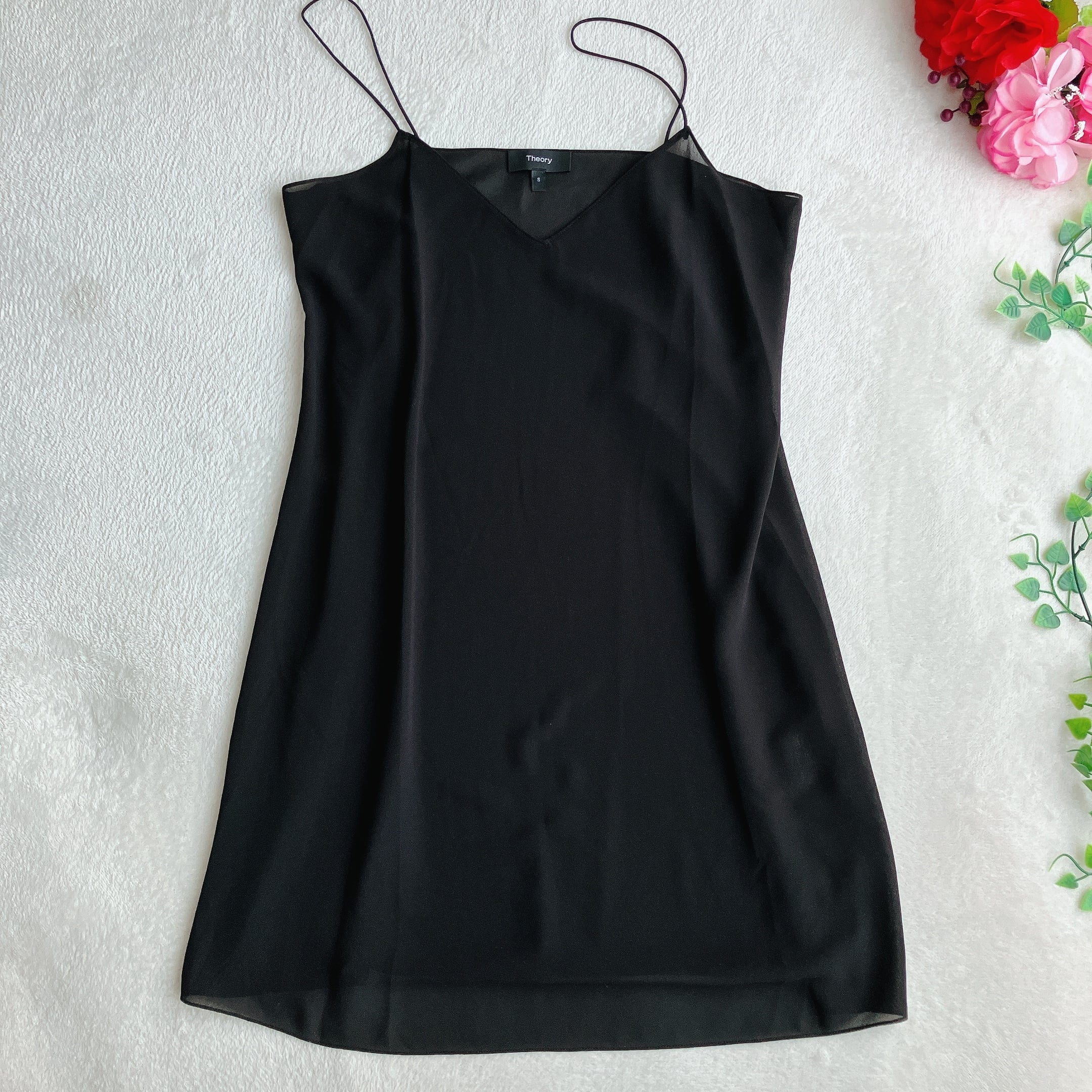 Theoryのシルク100%ワンピースは、軽やかでなめらかな肌触りが魅力。シアー素材の透け感が女性らしさを引き立て、上品で高見えする一着です。結婚式・パーティー・お呼ばれコーデにもおすすめ◎
