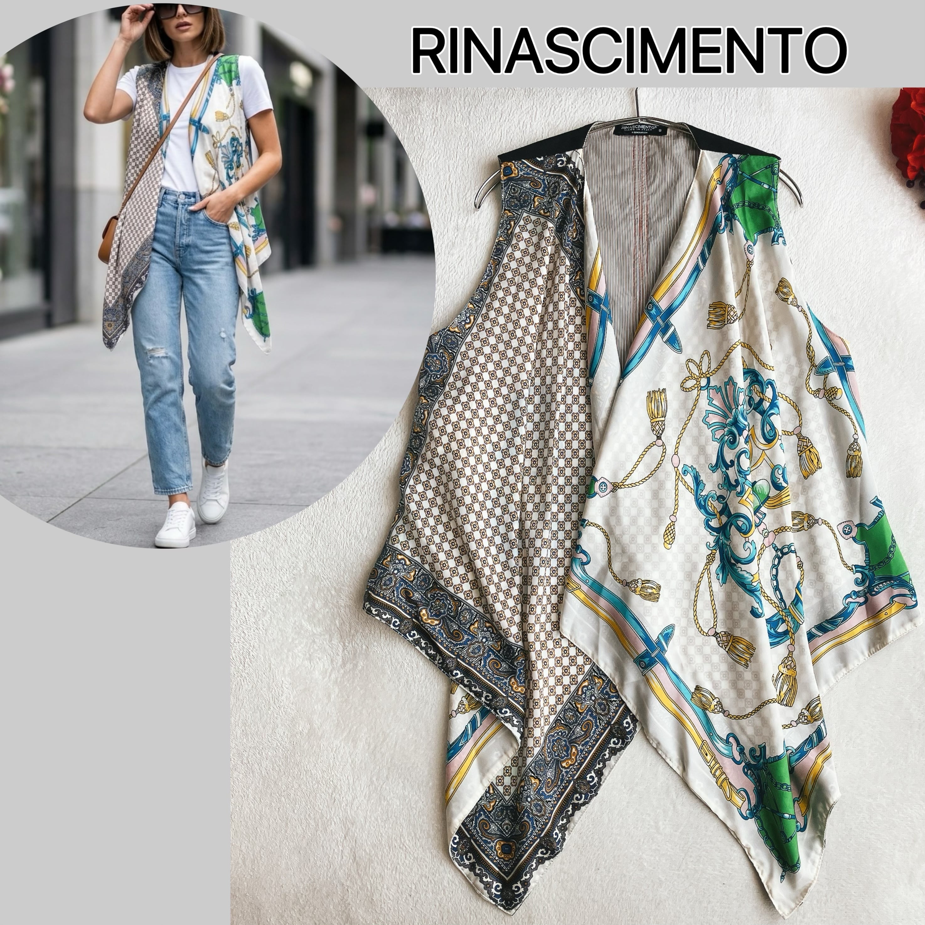 リナシメント RINASCIMENTO★スカーフ柄 ベスト ミドル丈 総柄 イタリア製 マルチカラー