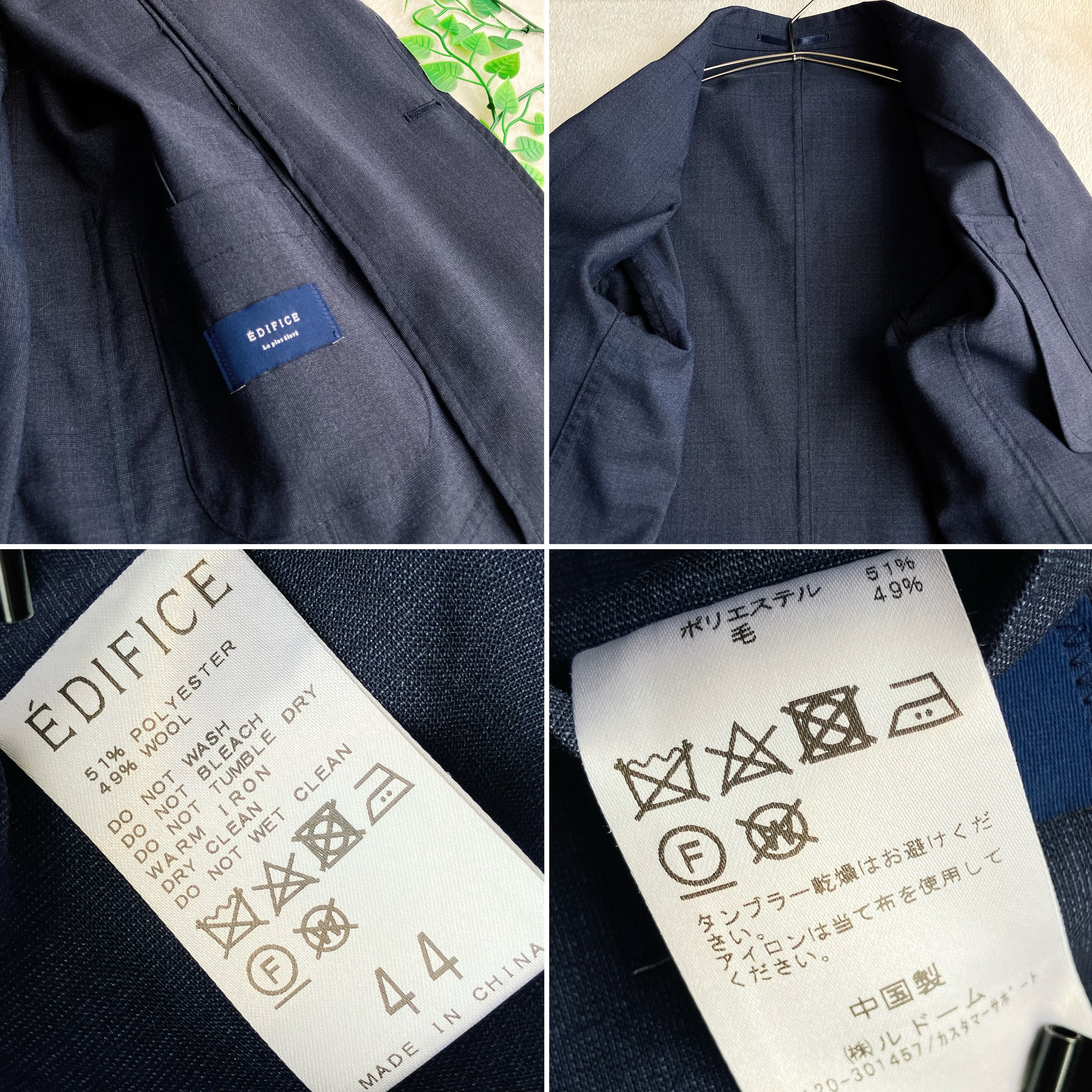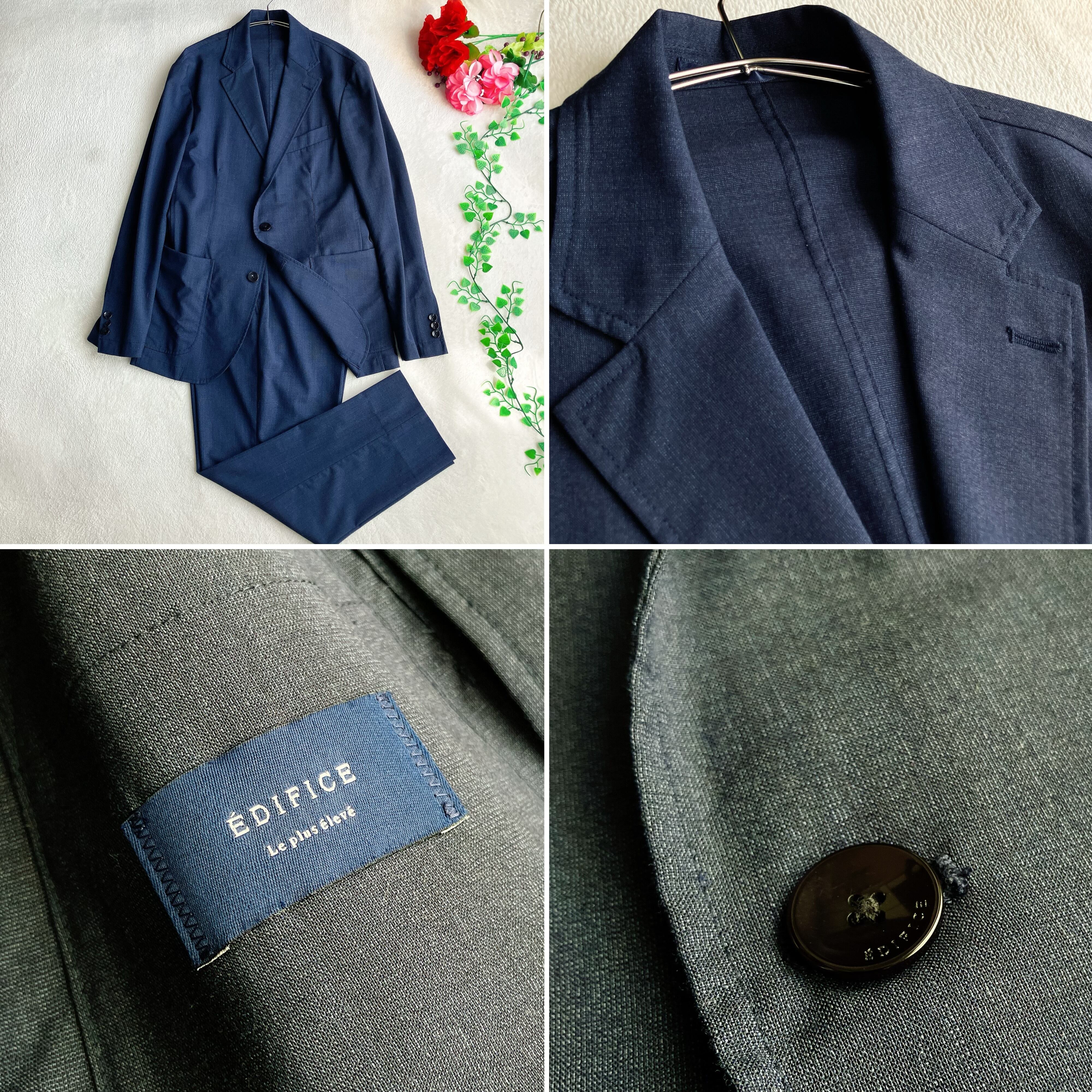 【美品】EDIFICE エディフィス★セットアップ スーツ アンコンジャケット トラベルスーツ ウール 段返り3B ダークネイビー