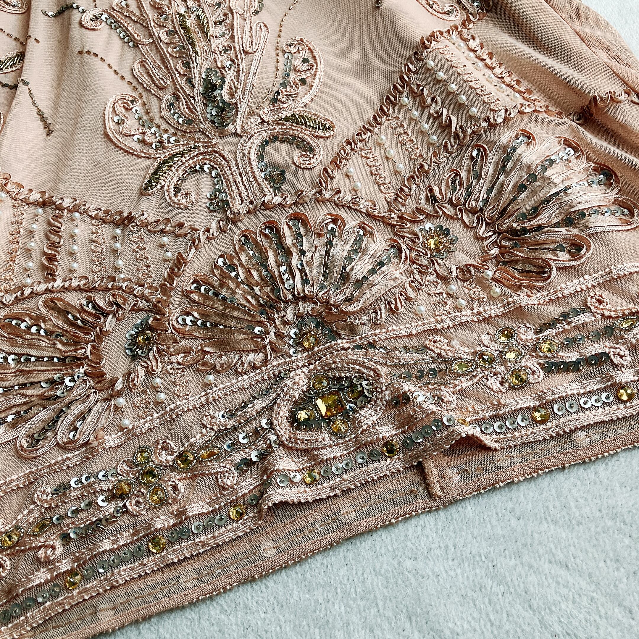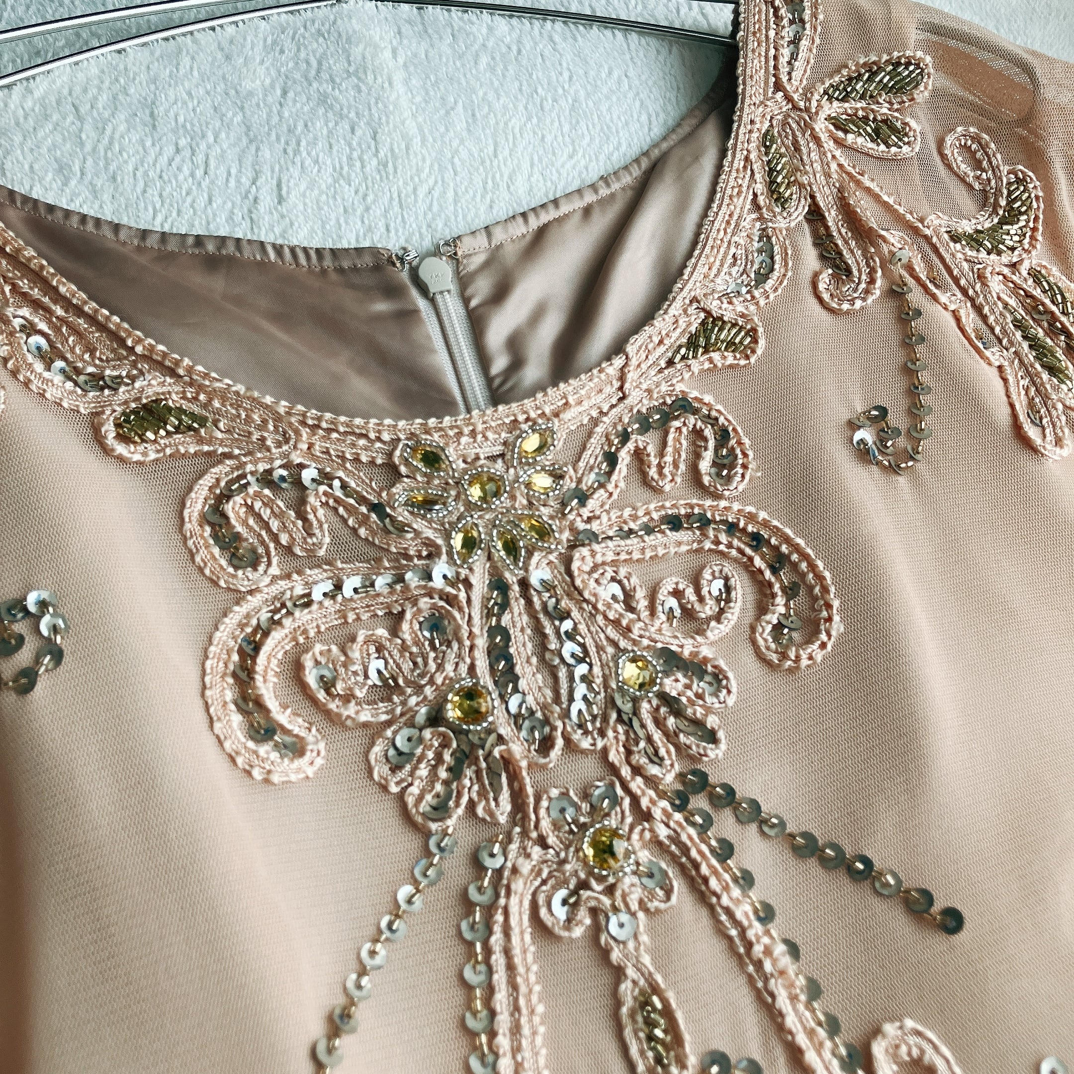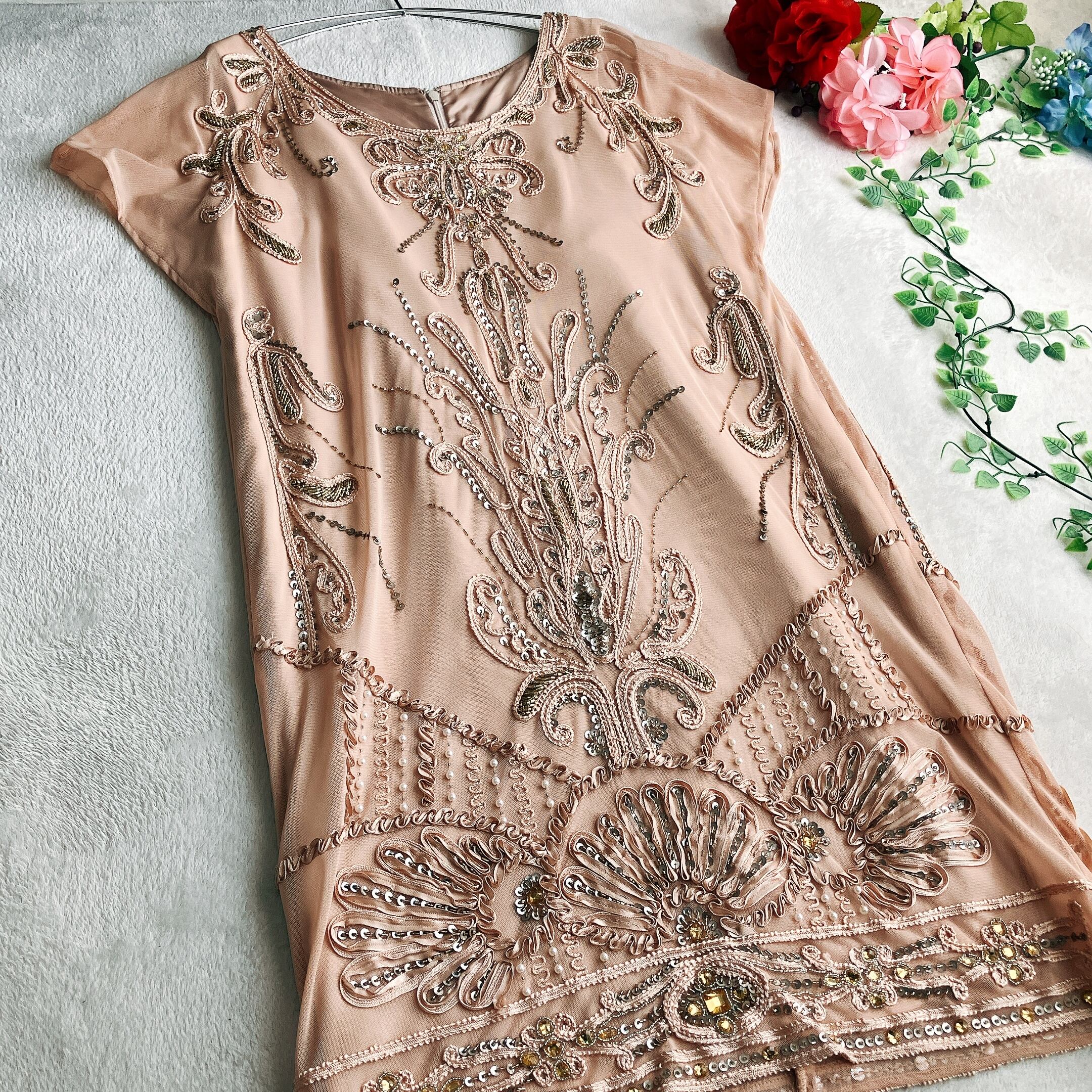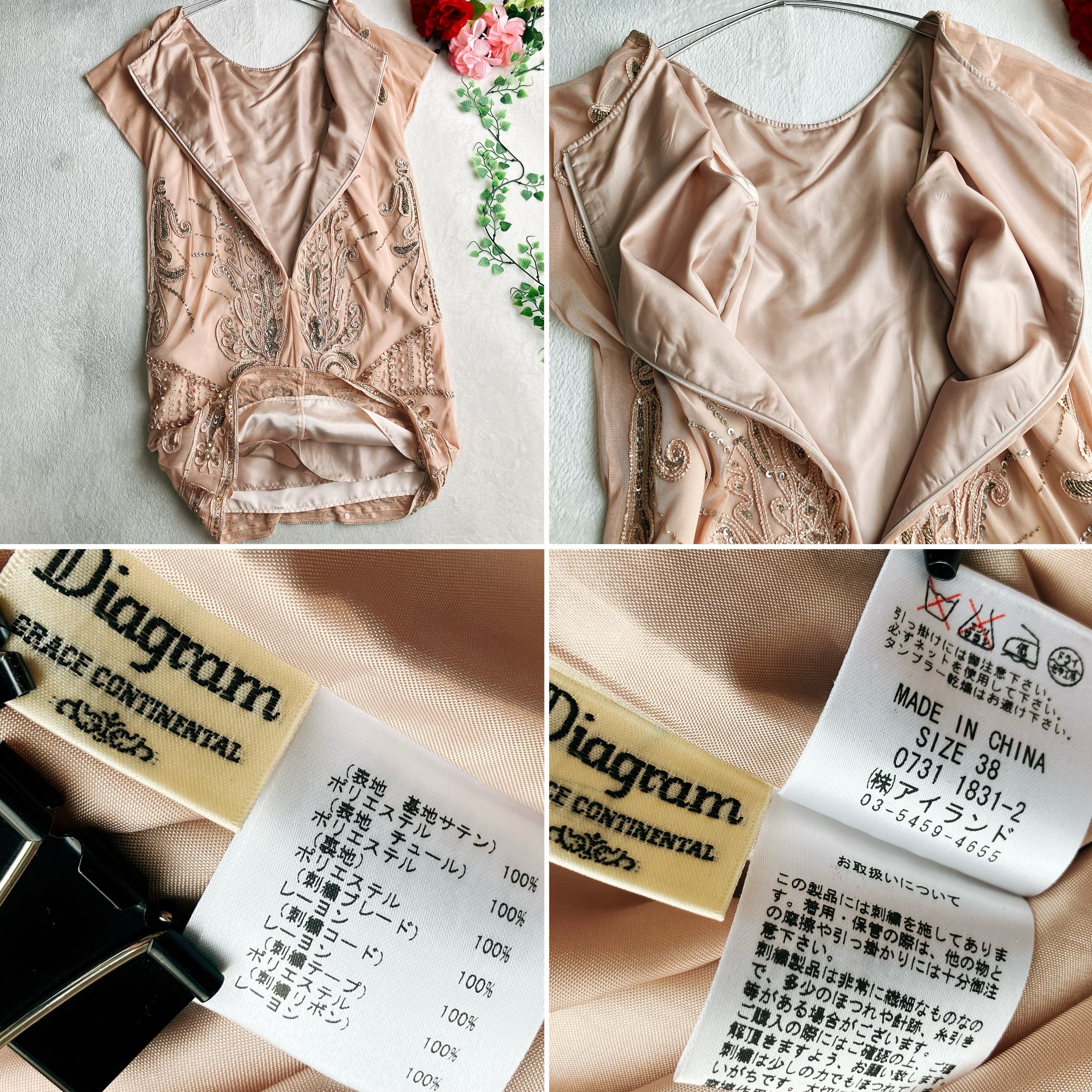 【美品】Diagram ダイアグラム★エンブロイダリー チュール ワンピース 花柄 ビジュー スパンコール ビーズ ベージュ系