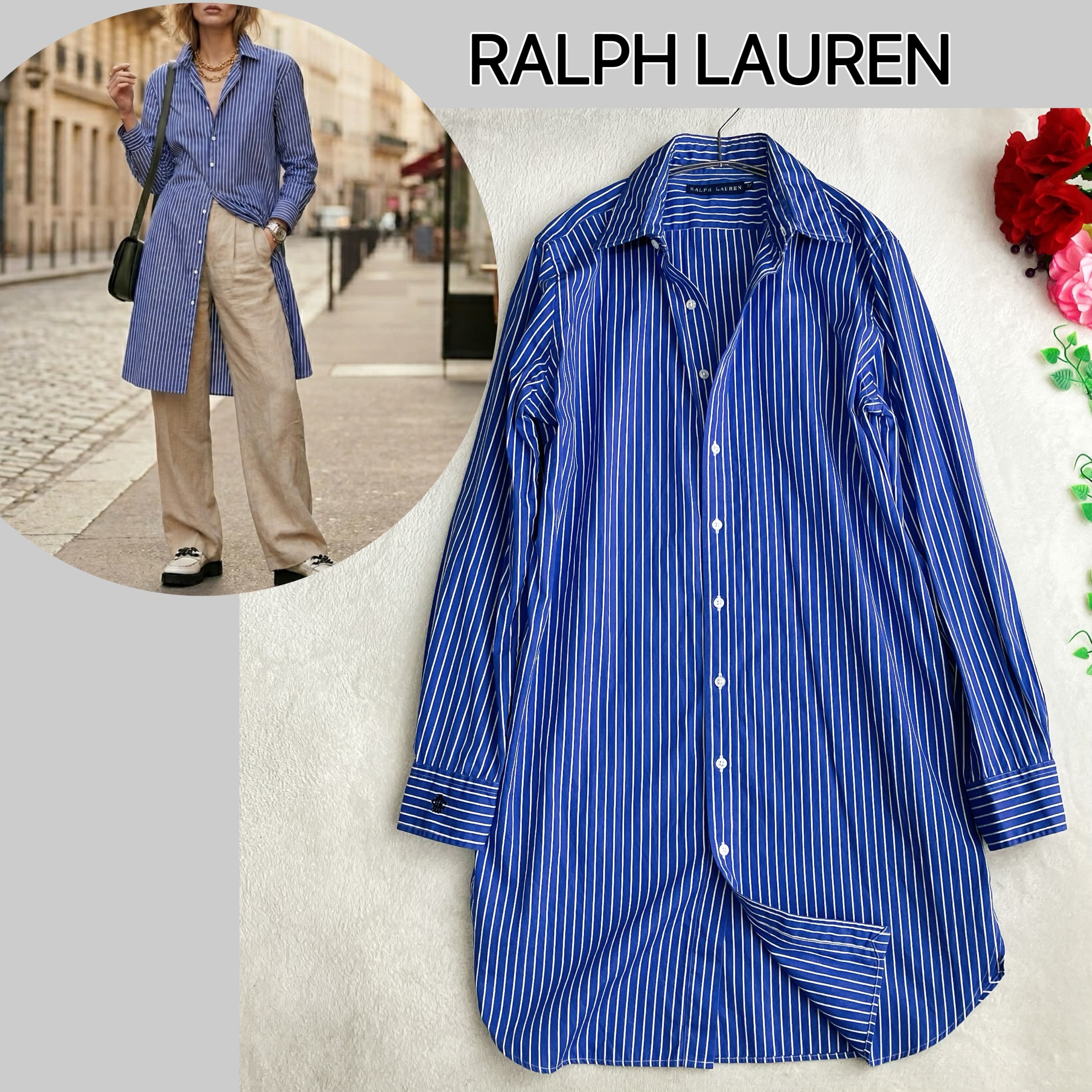人気ブランドRALPH LAURENらしいクラシカルで上品なブルー×ホワイトのストライプ柄。シャツワンピースとしてはもちろん、羽織りとしても使える着回し力の高い一着で、春夏コーデにぴったりです。