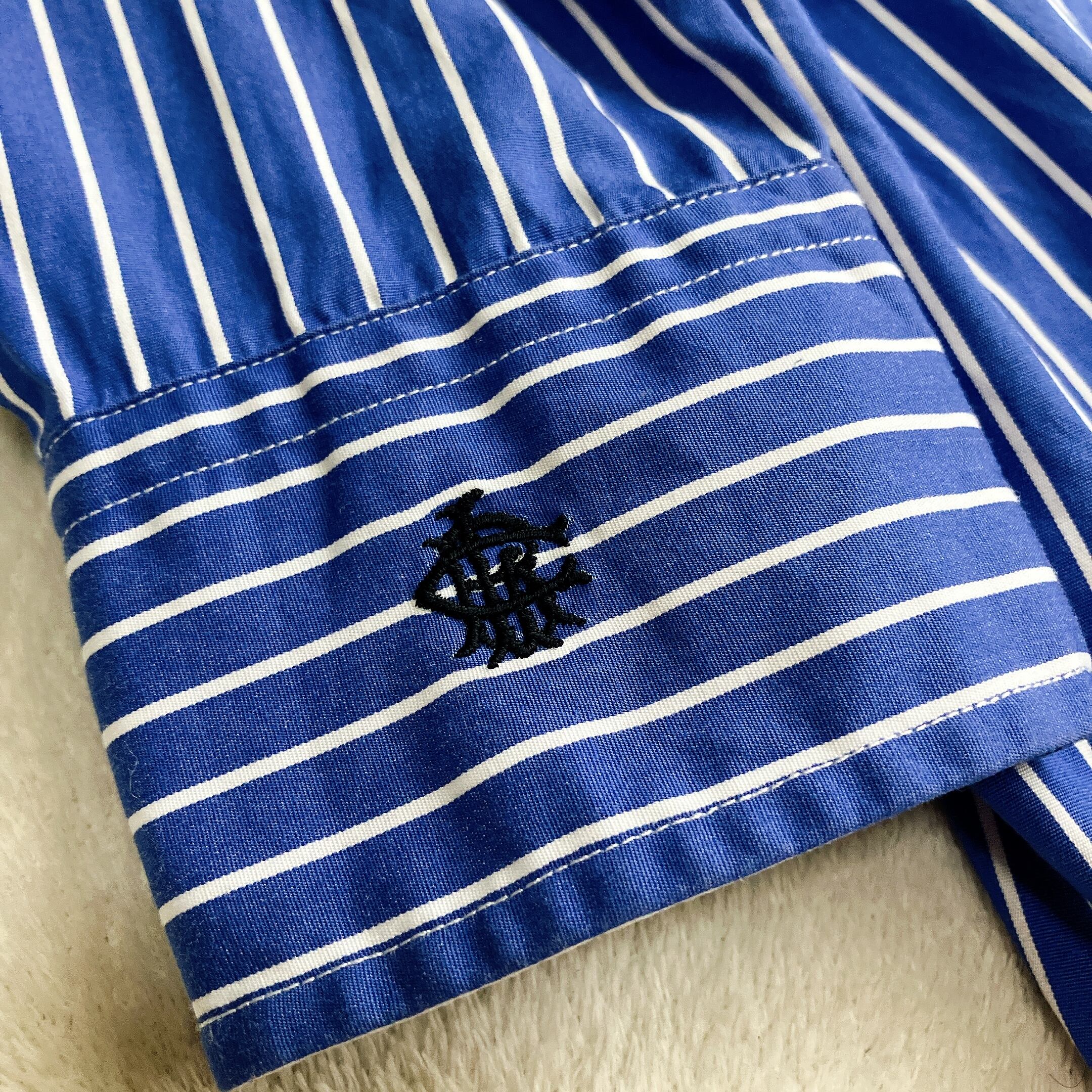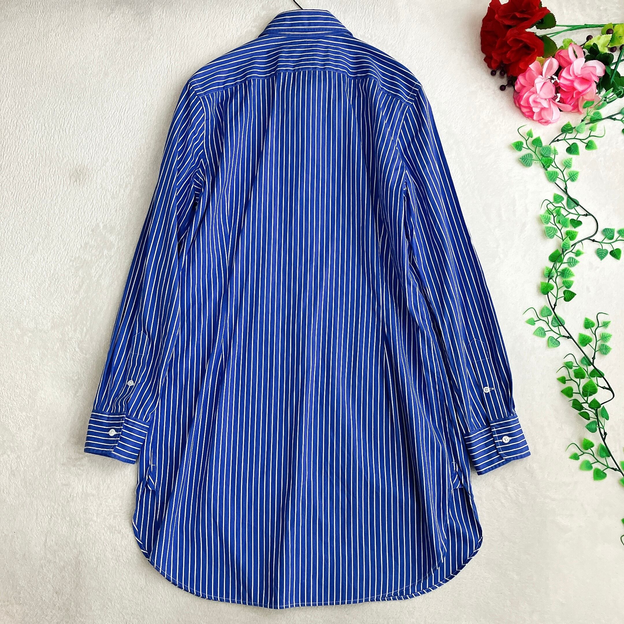 【極美品】【洗える】RALPH LAUREN ラルフローレン★ストライプ シャツワンピース 袖ロゴ ビッグシルエット ブルー×ホワイト