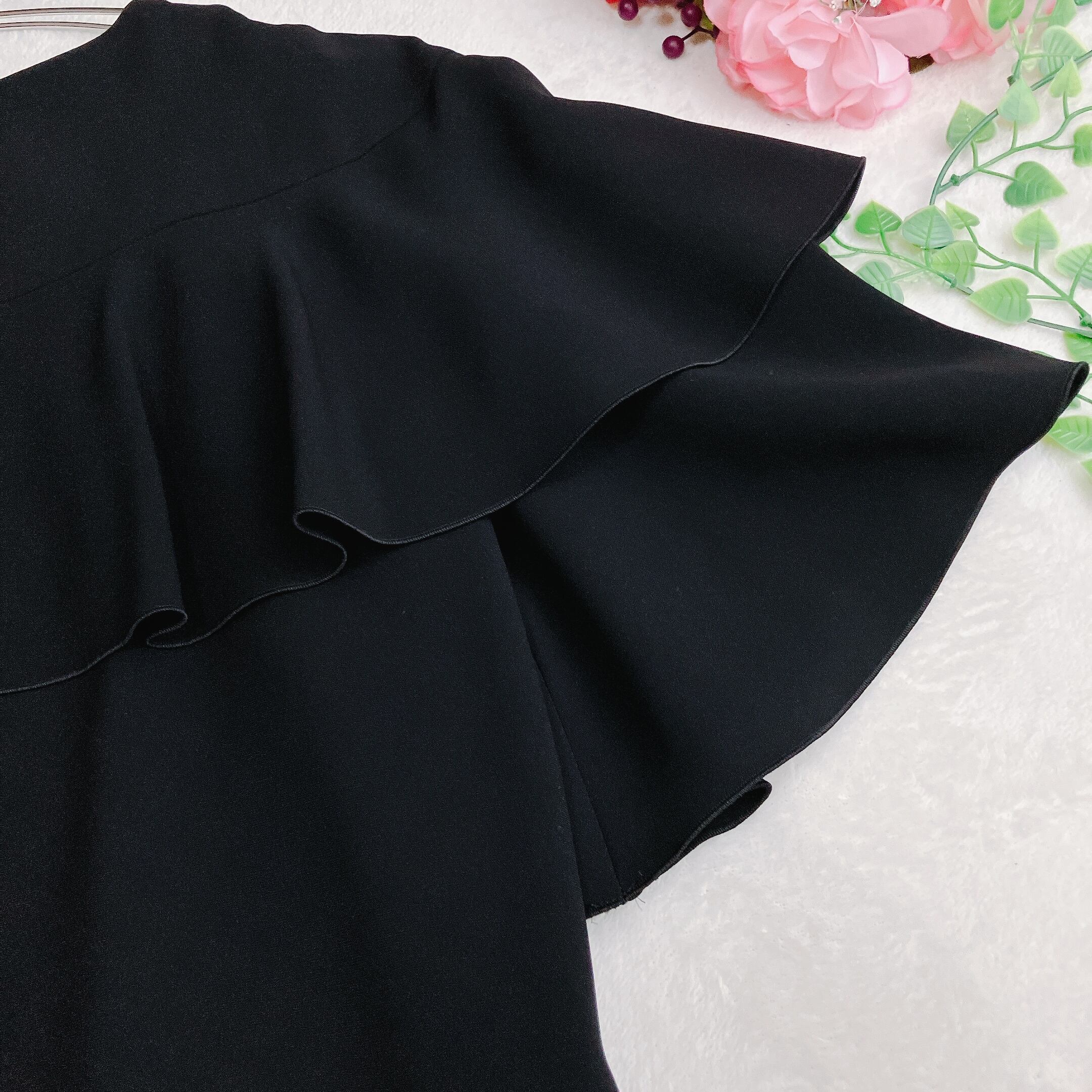 ADORE アドーア★フレアスリーブ コクーン ワンピース ダブルフリル ドロップショルダー クルーネック セレモニー ブラック