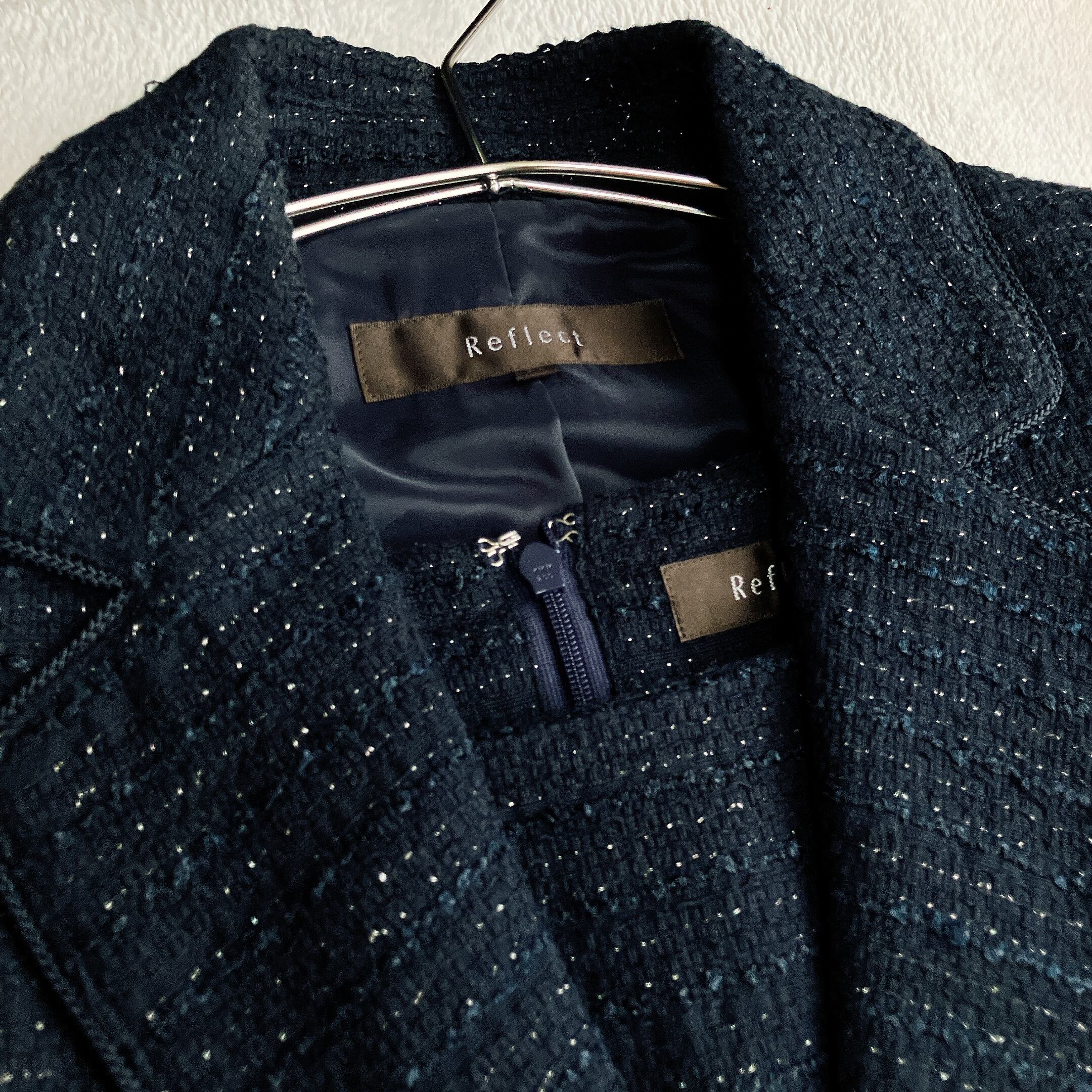 Reflect リフレクト★ツイード ワンピーススーツ Aライン パイピング ラメ セレモニースーツ ダークネイビー
