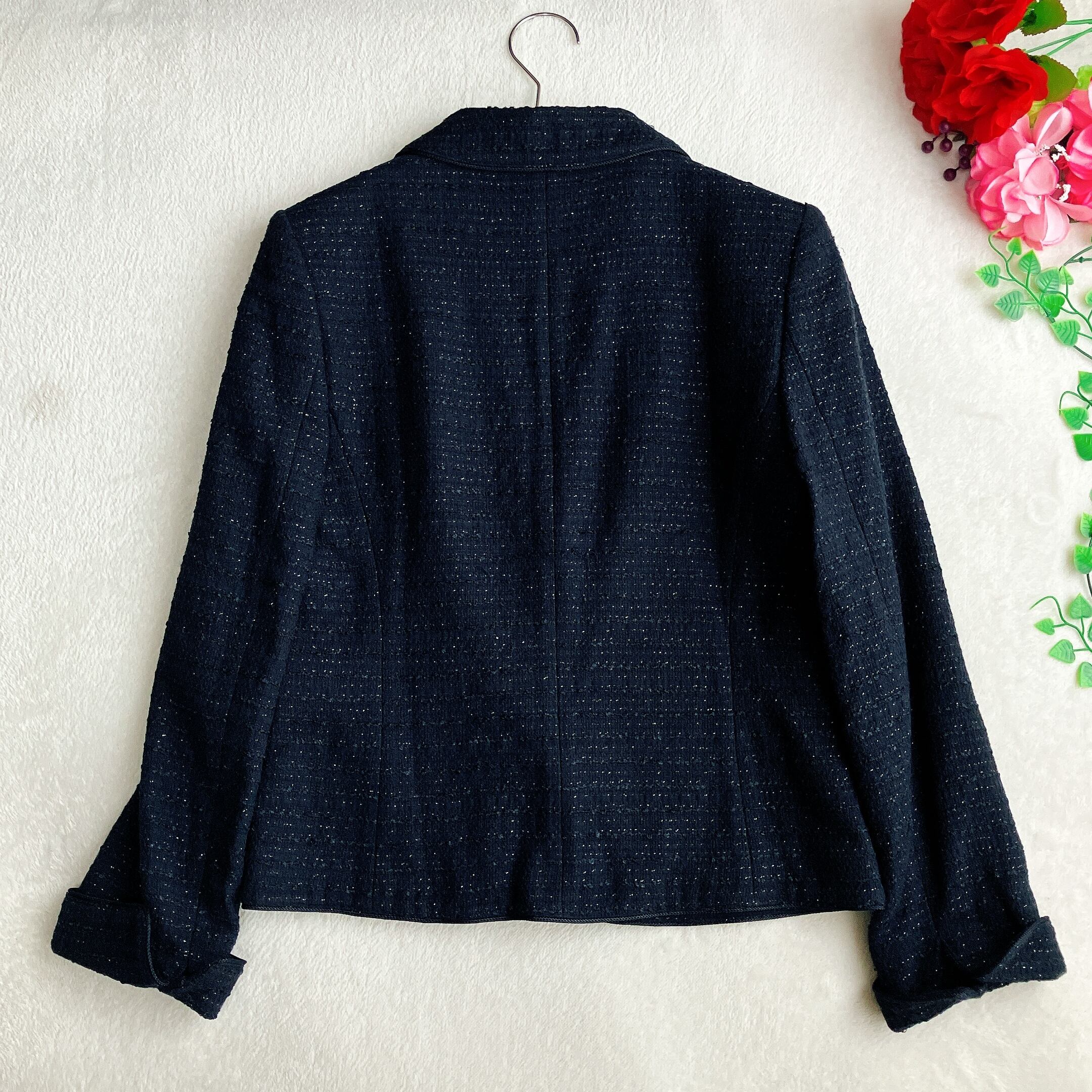 【極美品】Reflect リフレクト★ツイード ワンピーススーツ Aライン パイピング ラメ セレモニースーツ ダークネイビー