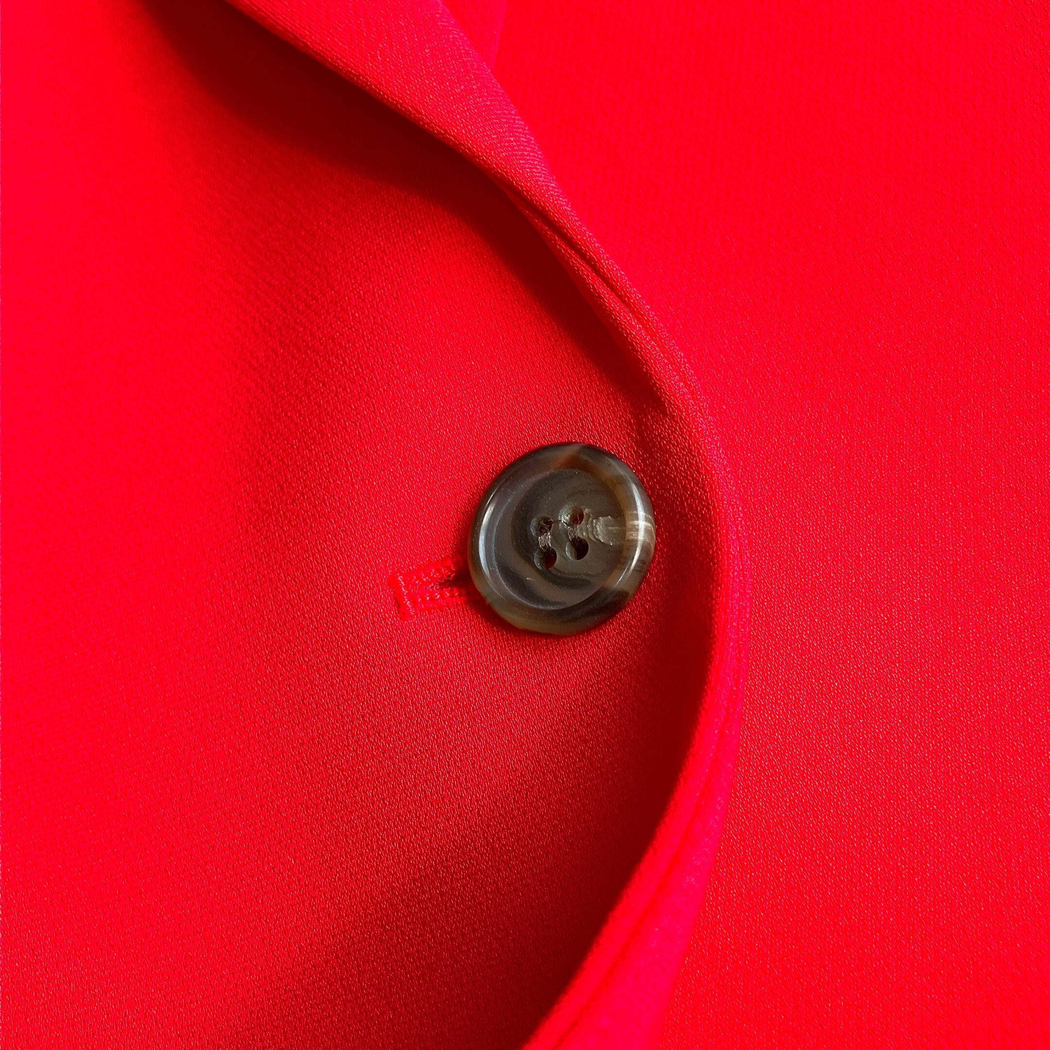 鮮やかなレッドが目を引き、シンプルコーデに羽織るだけで一気に旬な印象に。春アウター・差し色ジャケット・大人カジュアルとしてもおすすめで、デニムやワイドパンツとも相性抜群です。