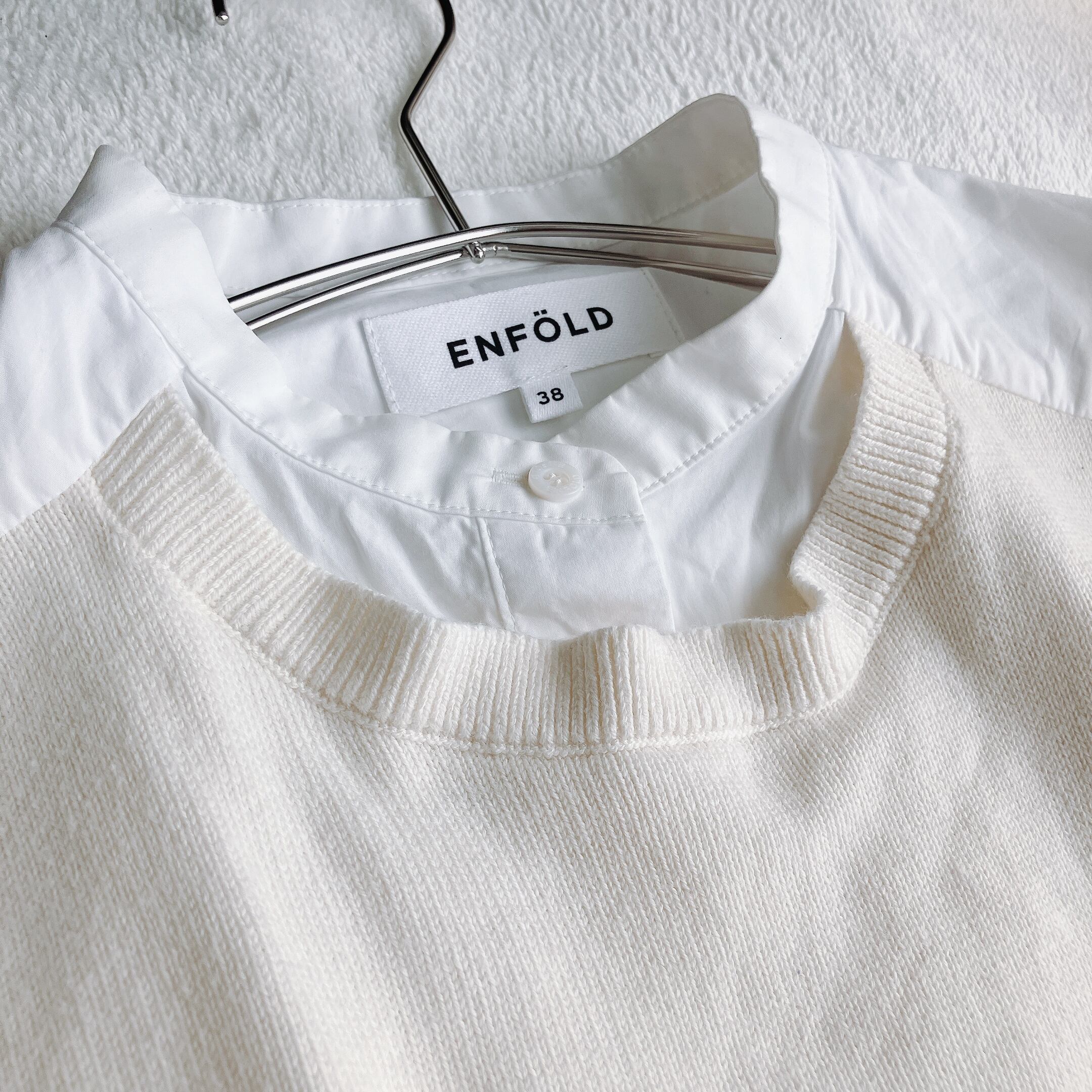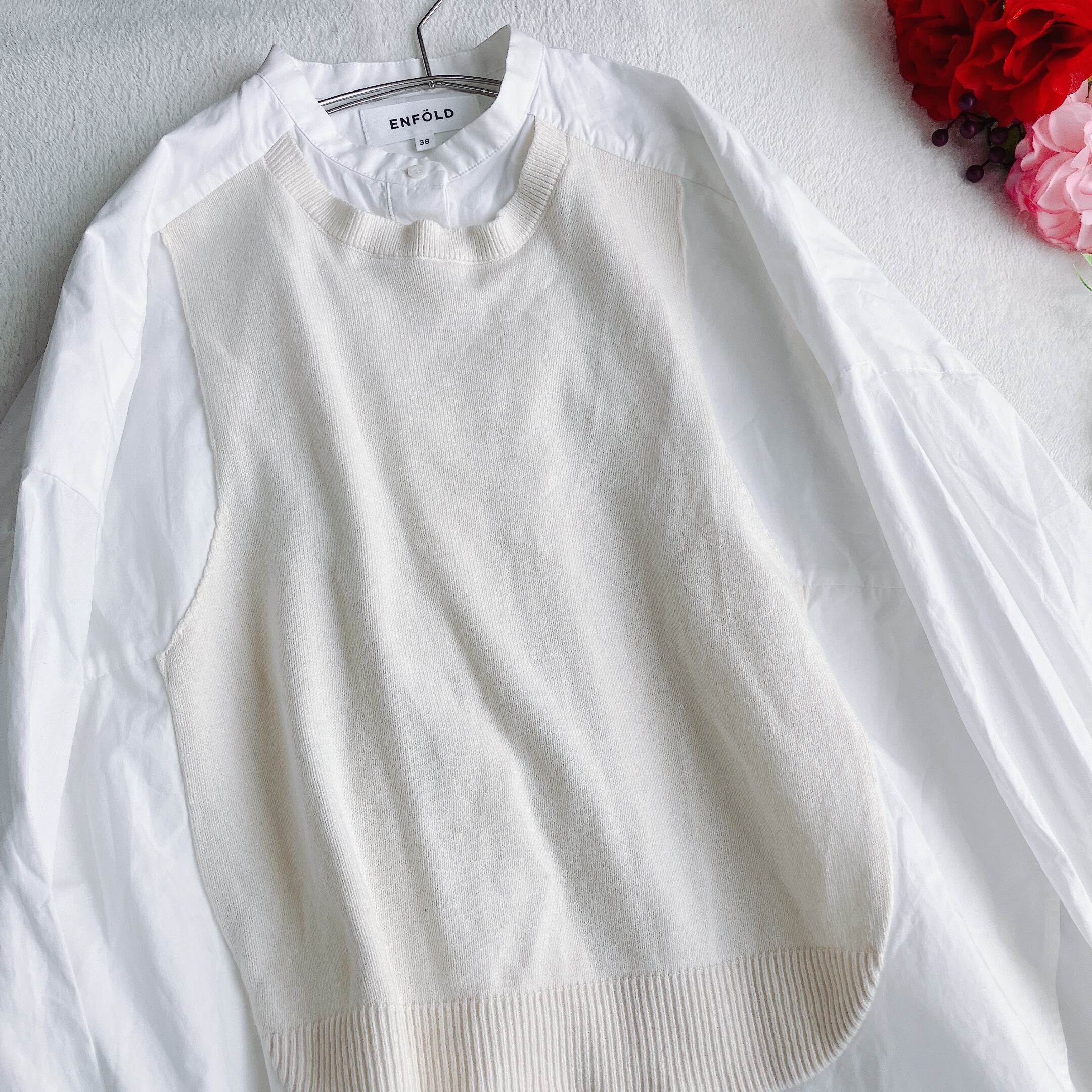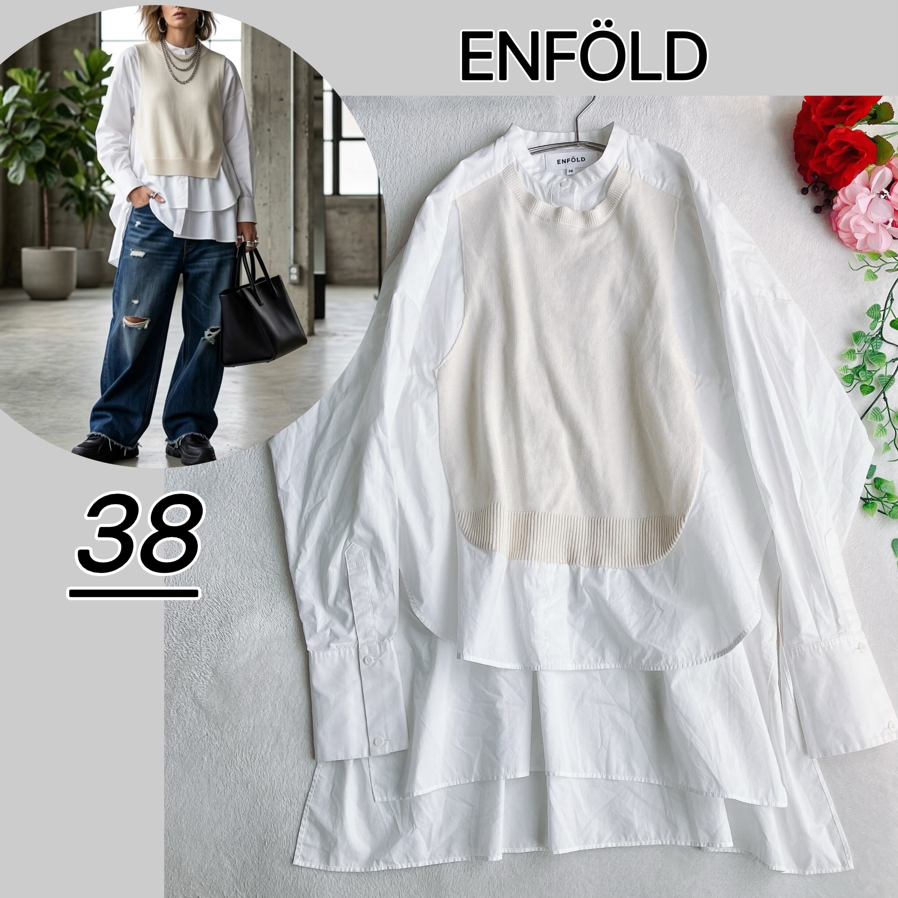 ENFOLD エンフォルド★スピンタイプライター ベスト ドッキング プルオーバー ビッグシルエット 長袖シャツ オフホワイト系