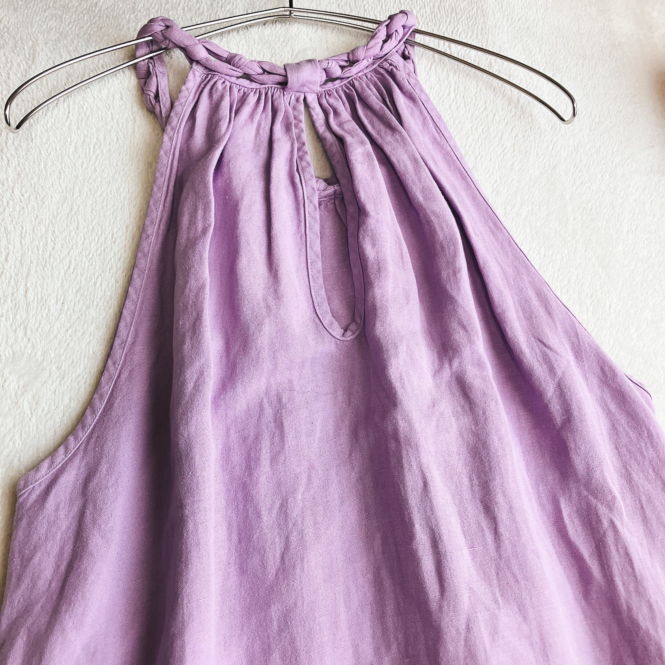 【美品】【手洗い可】SeaRoomlynn シールームリン★リネン 三つ編み ホルターネック ワンピース マキシ丈 Aライン パープル系