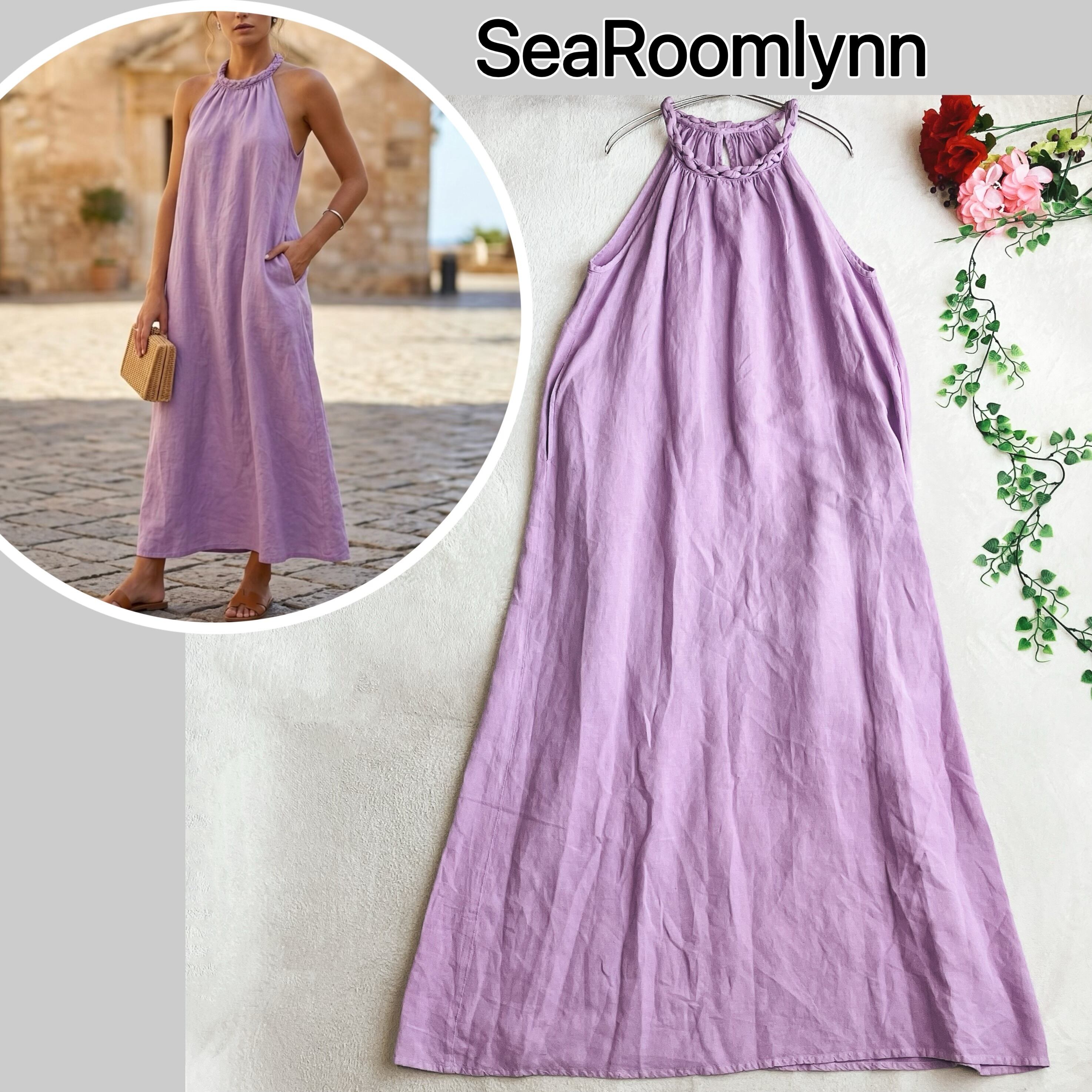 SeaRoomlynn シールームリン★リネン 三つ編み ホルターネック ワンピース マキシ丈 Aライン パープル系