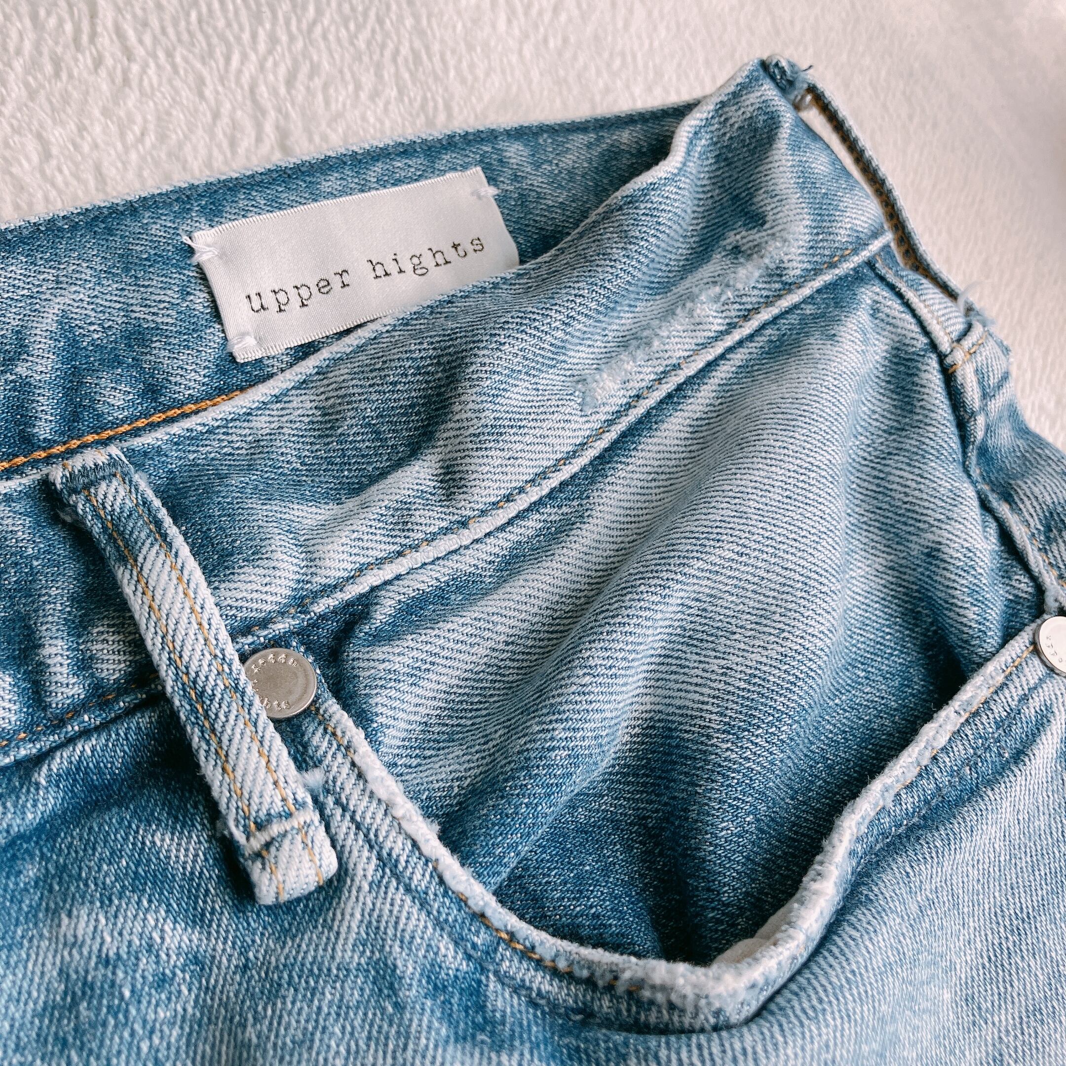 upper hightsの人気モデル「THE ROBIN」は、ハイウエスト設計で脚長効果抜群。程よいワイドシルエットのデニムパンツで、体型カバーしつつトレンド感も演出できるジーンズです。