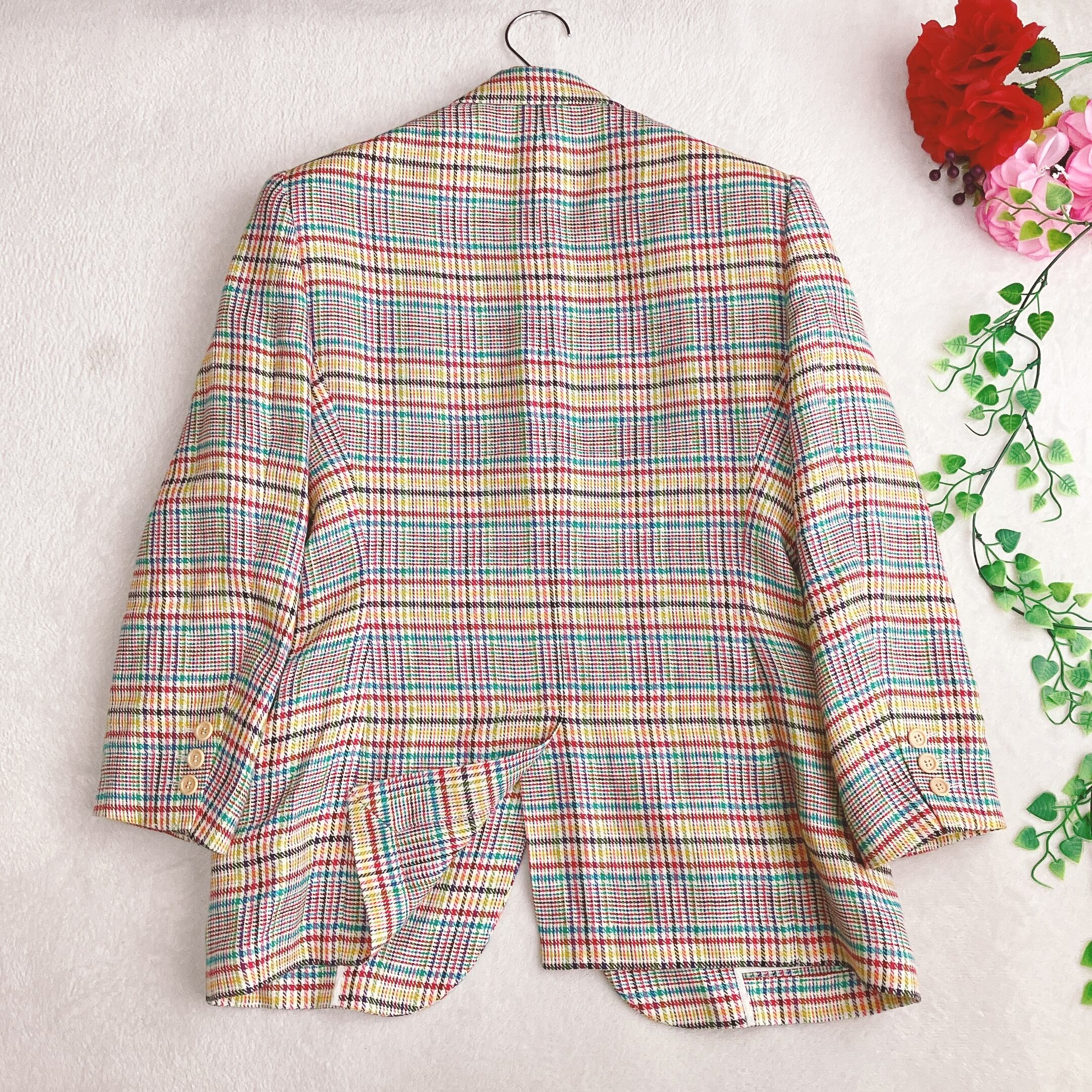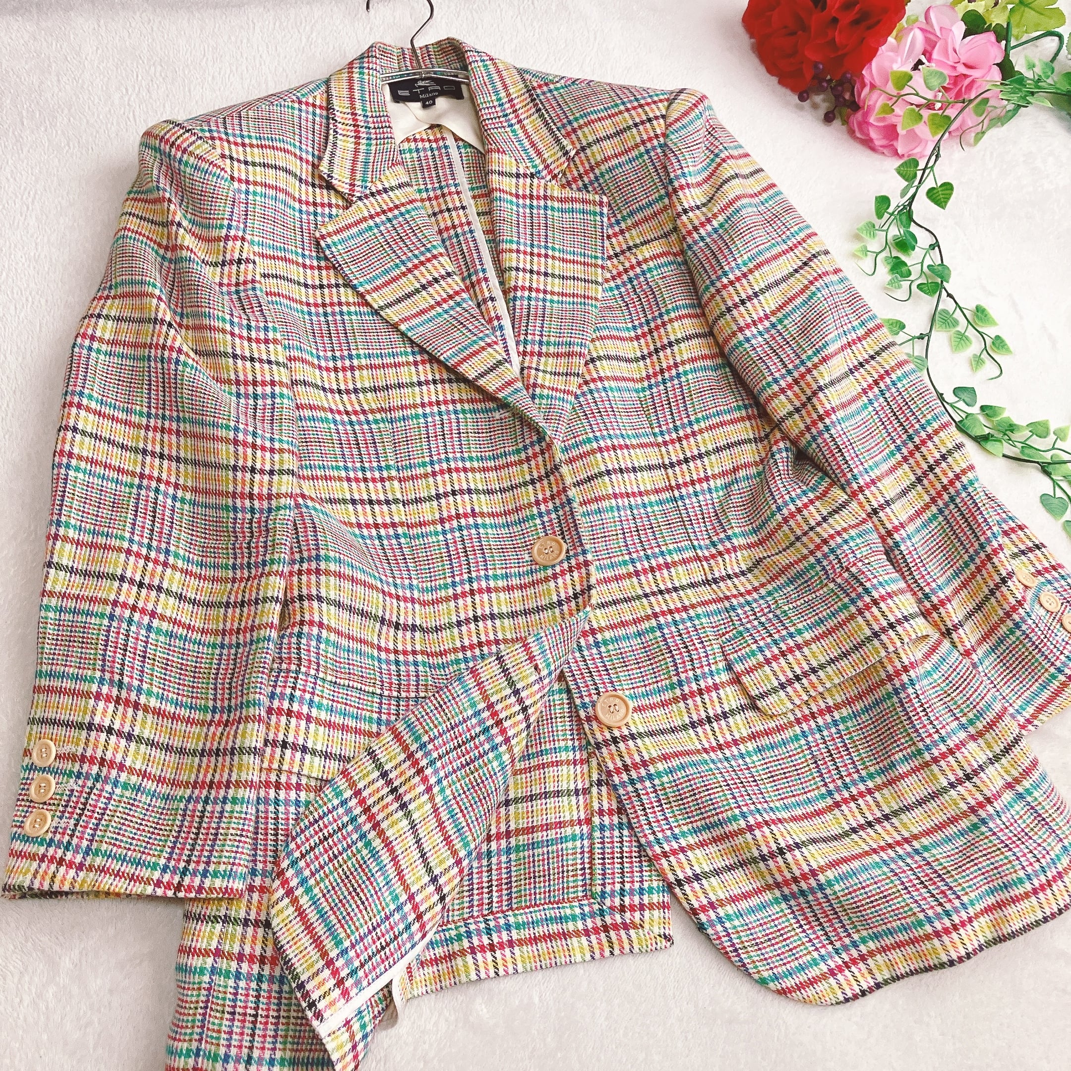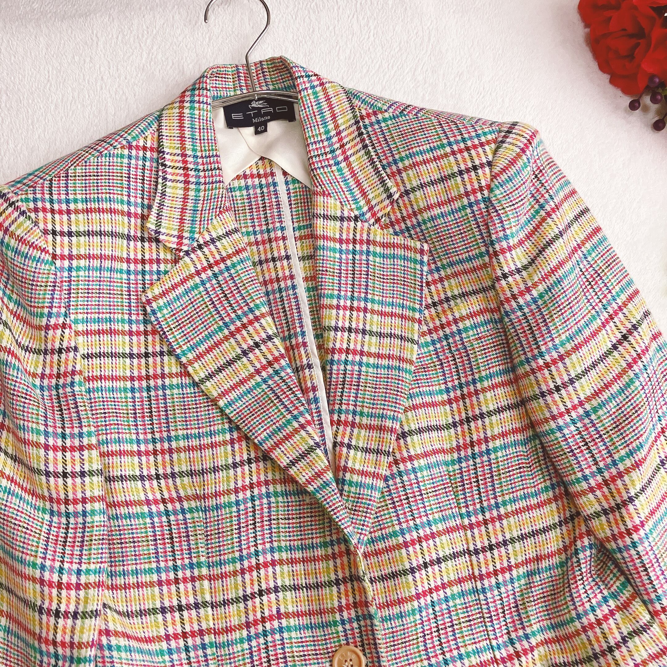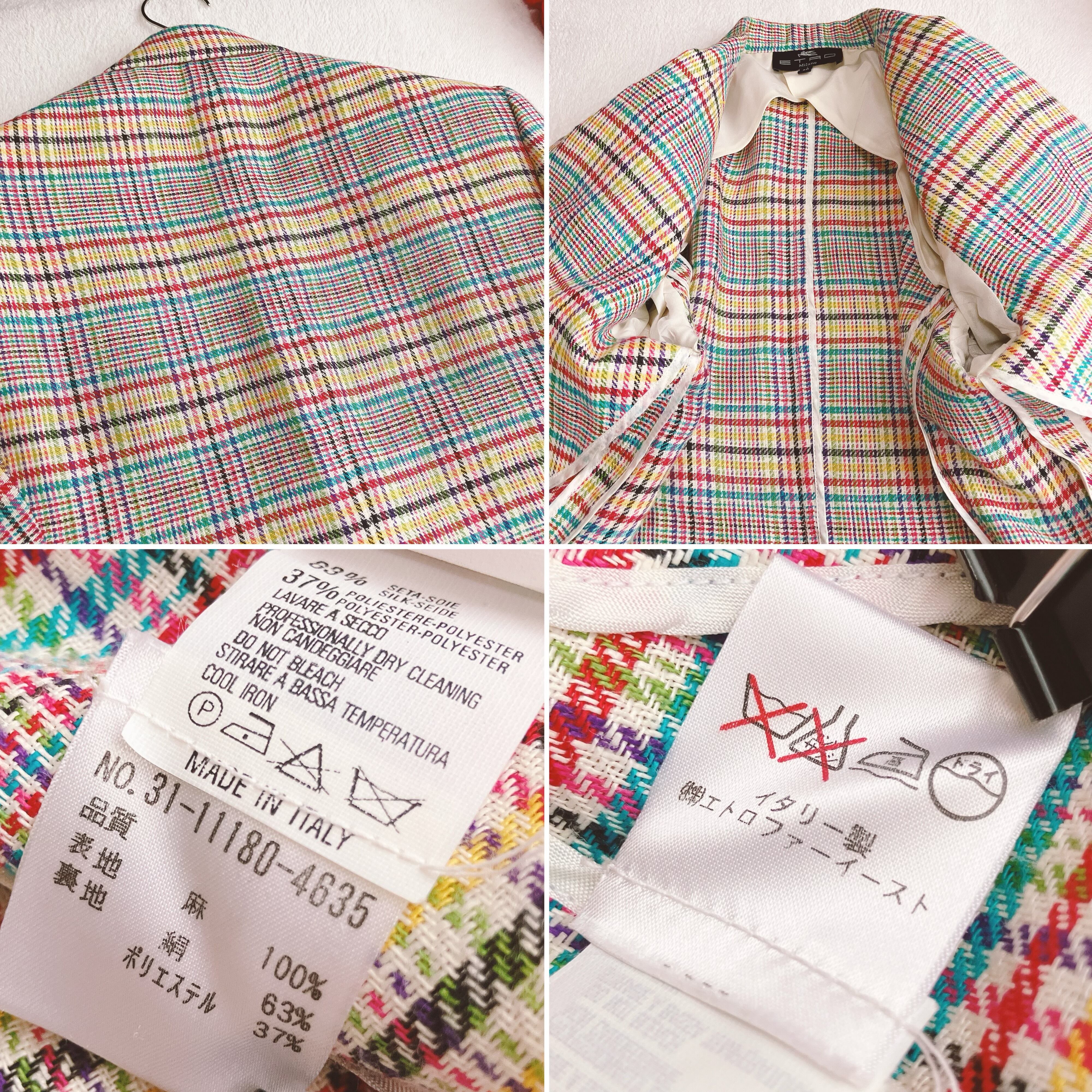 エトロ ETRO★リネン100% テーラードジャケット カラフル グレンチェック シルク 段返り3B イタリア製