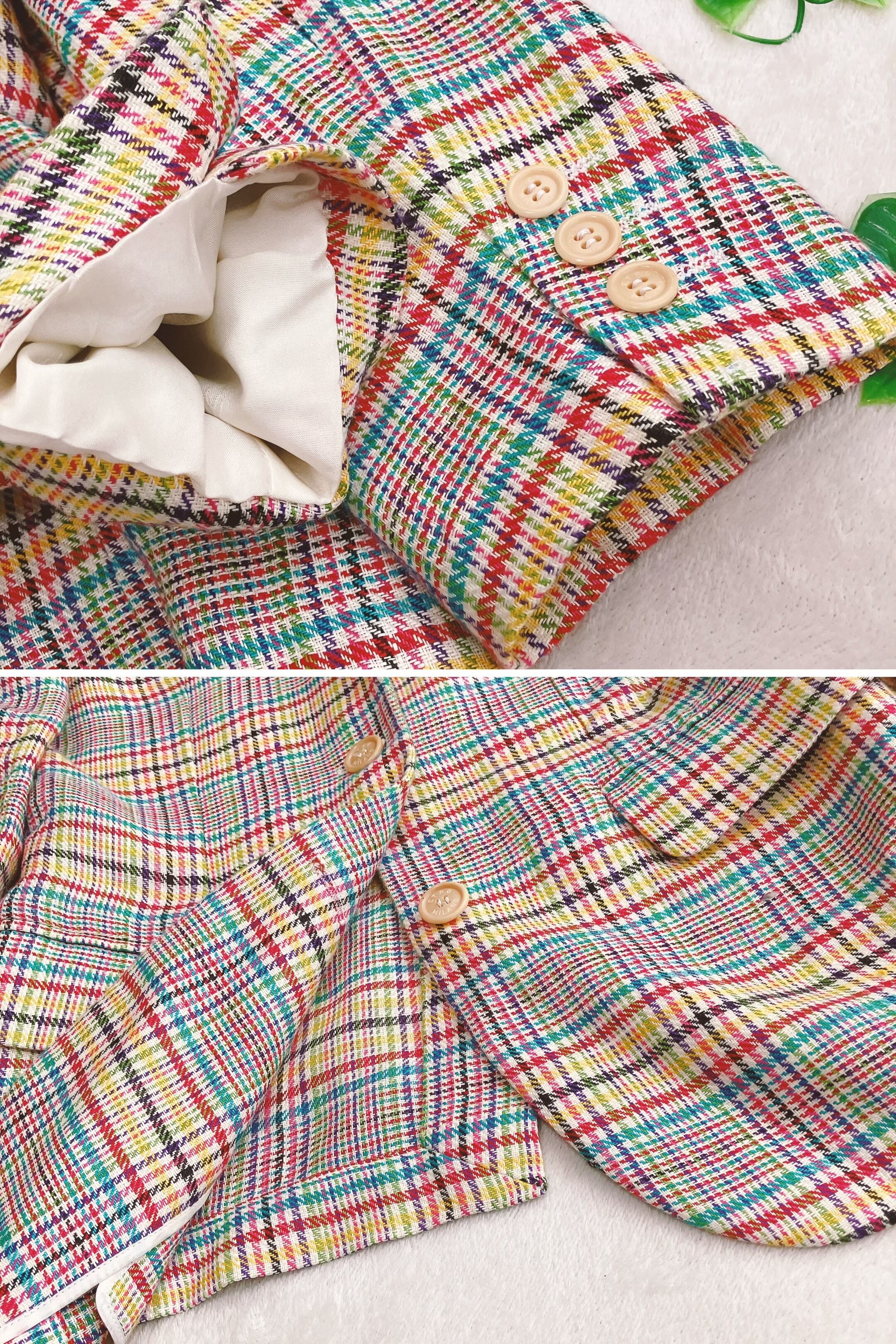 目を惹くカラフルなグレンチェック柄が特徴で、シンプルなコーデに羽織るだけで一気におしゃれ度アップ。クラシック×モダンを兼ね備えたデザインで、ジャケットコーデやきれいめカジュアルにもおすすめ。