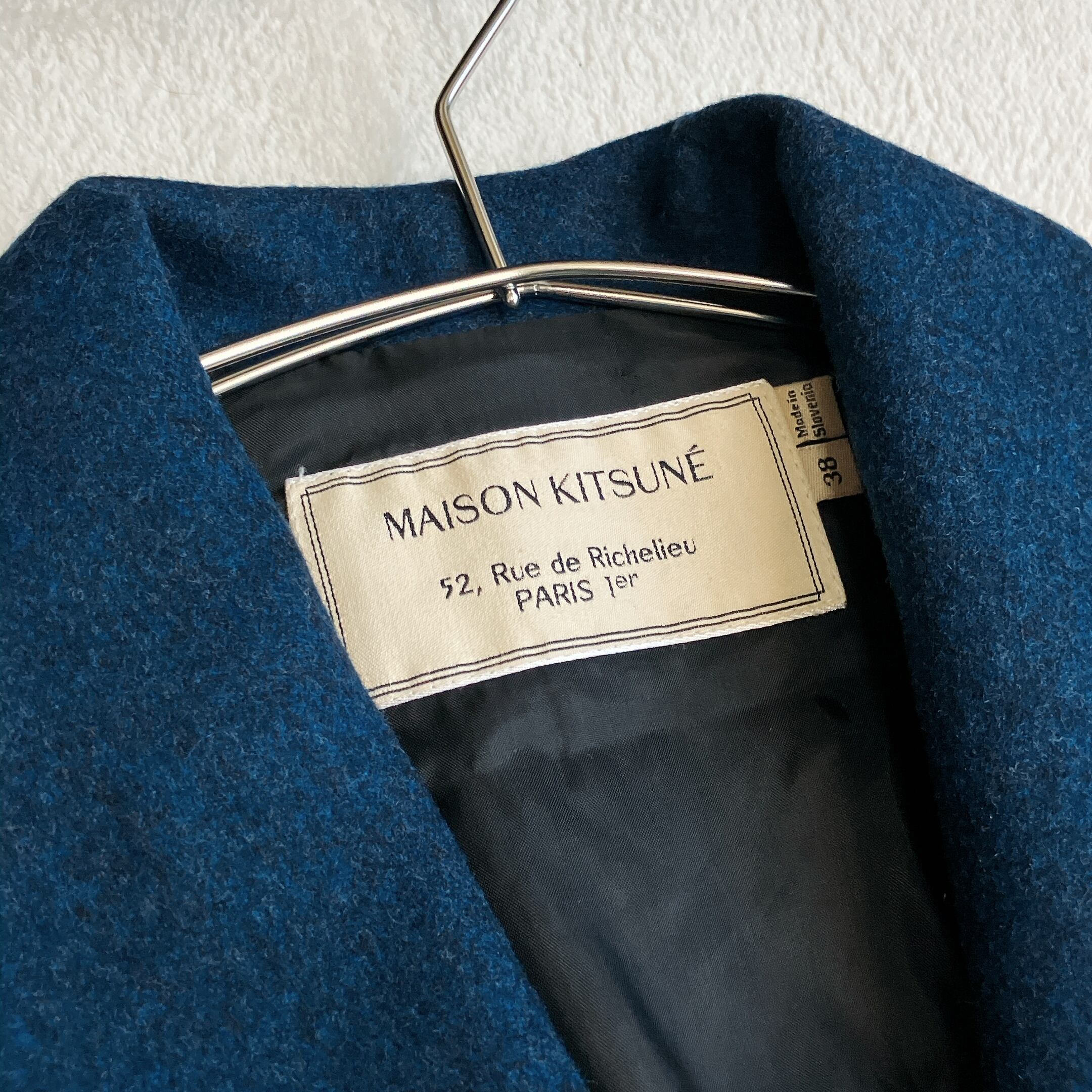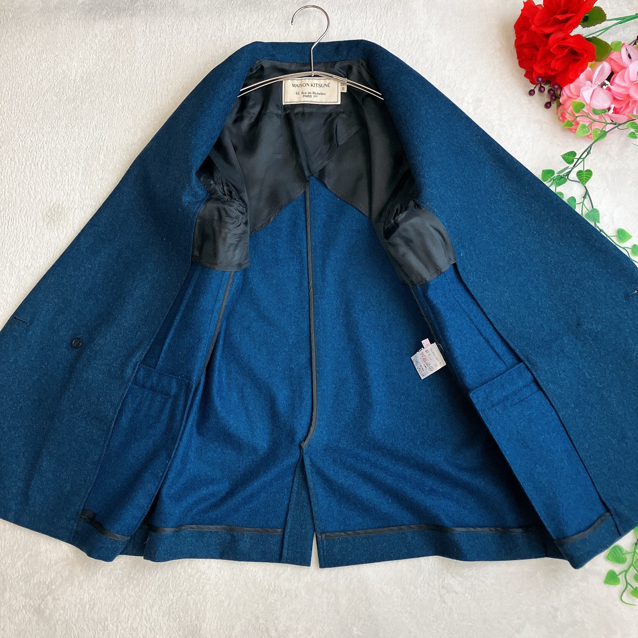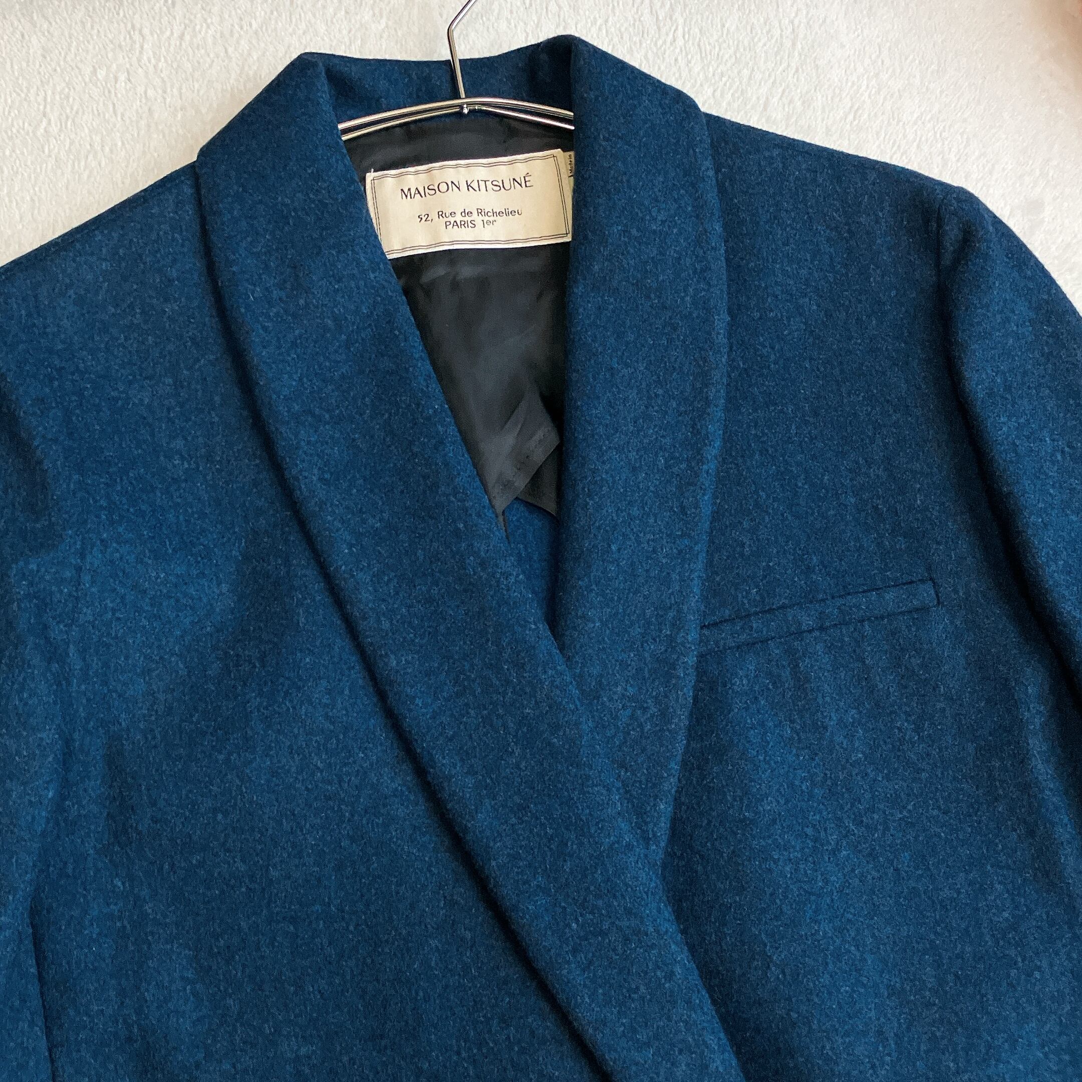 【極美品】MAISON KITSUNE メゾンキツネ★ショールカラー ダブル テーラードジャケット 背抜き ウール ダークブルー系