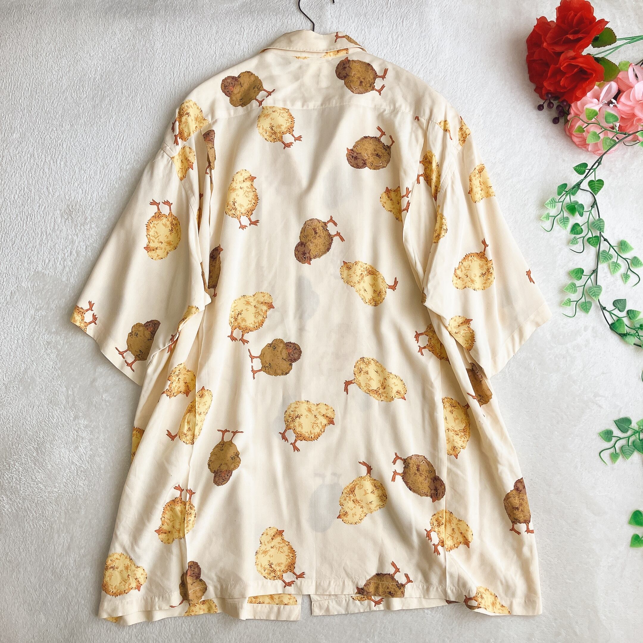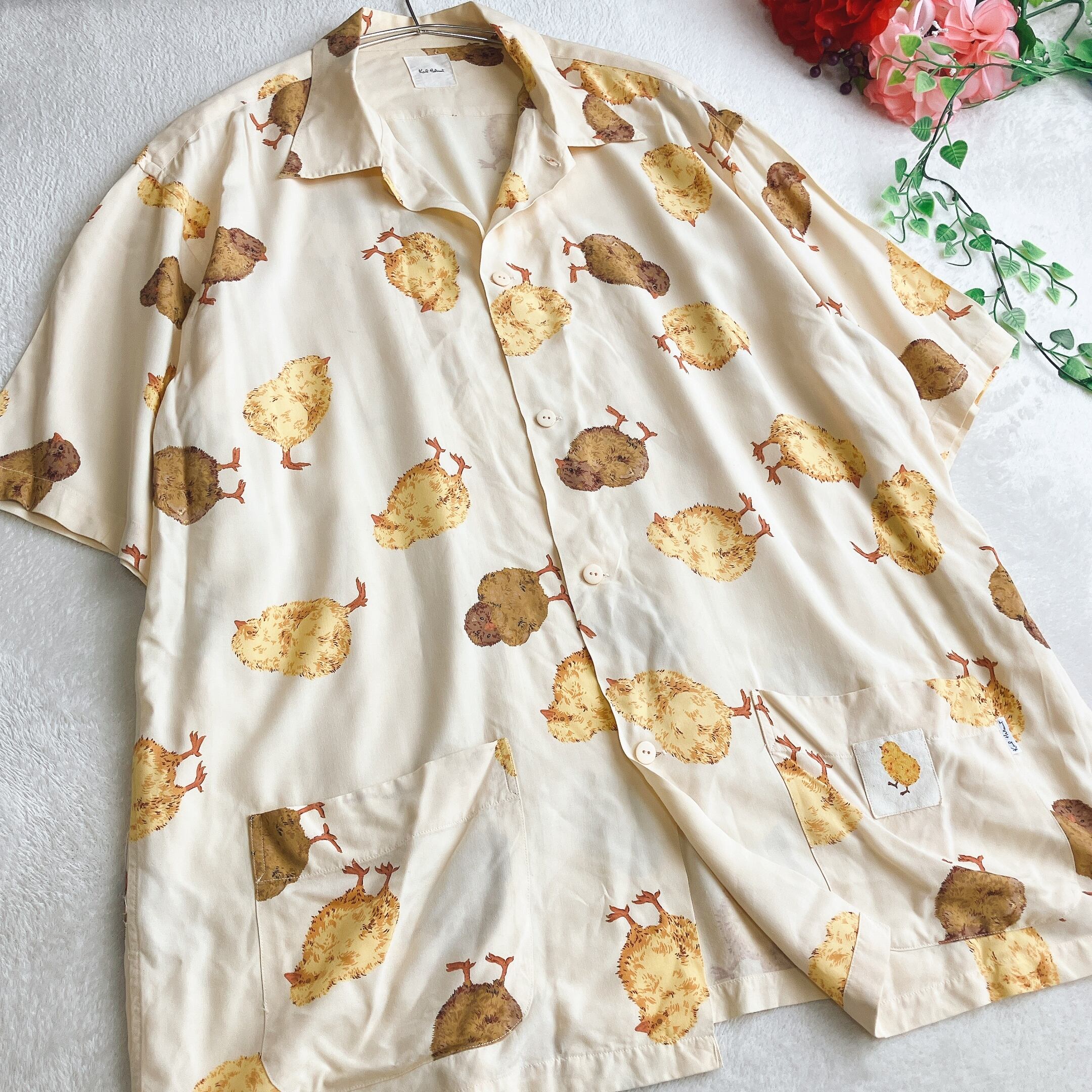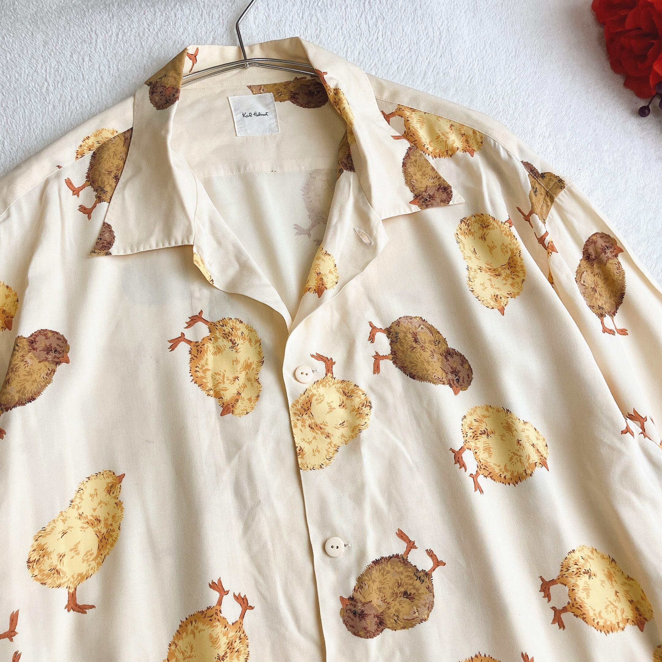 カールヘルム Karl Helmut★ヒヨコ柄 レーヨン 開襟シャツ とろみ 落ち感 総柄 アロハシャツ ライトイエロー×マルチ