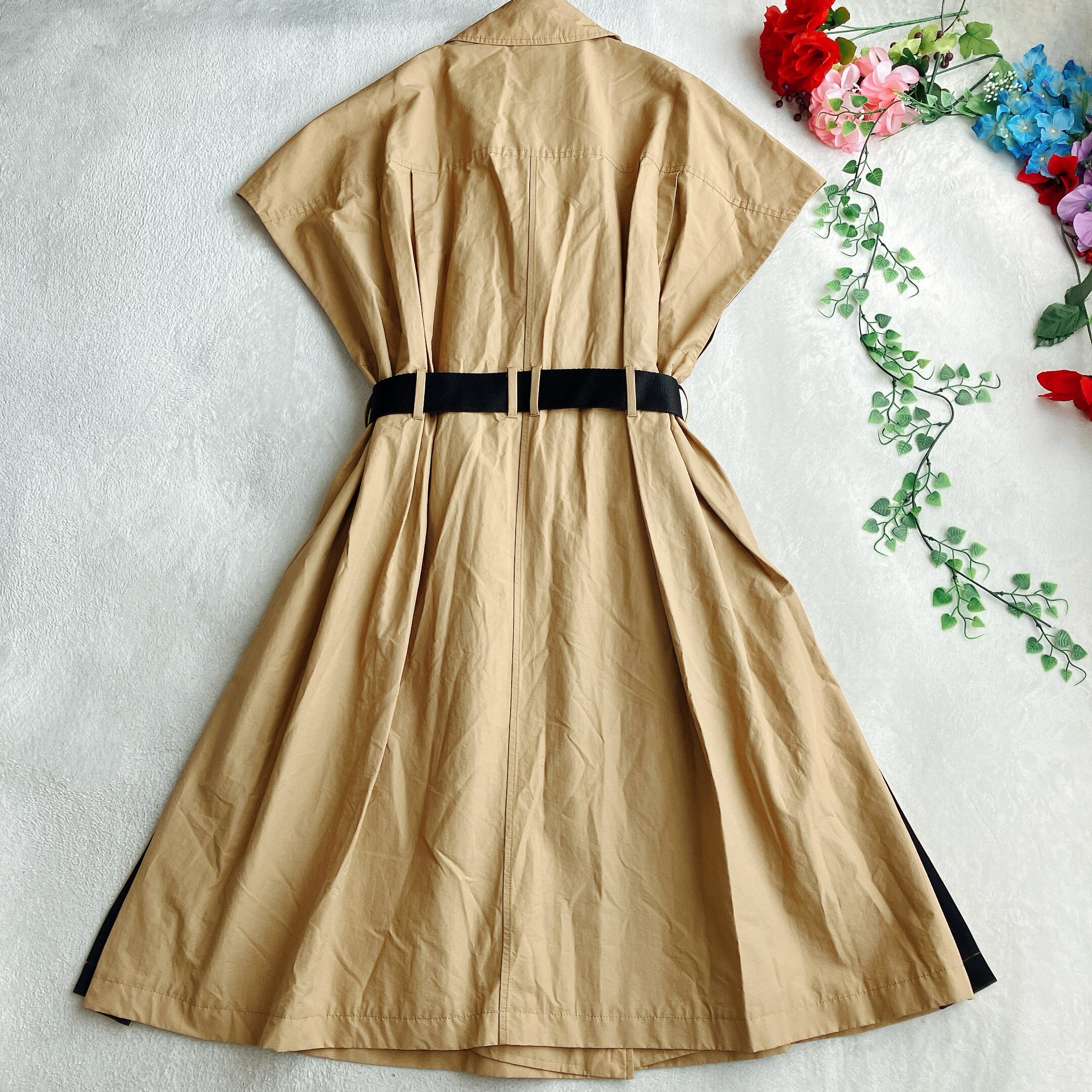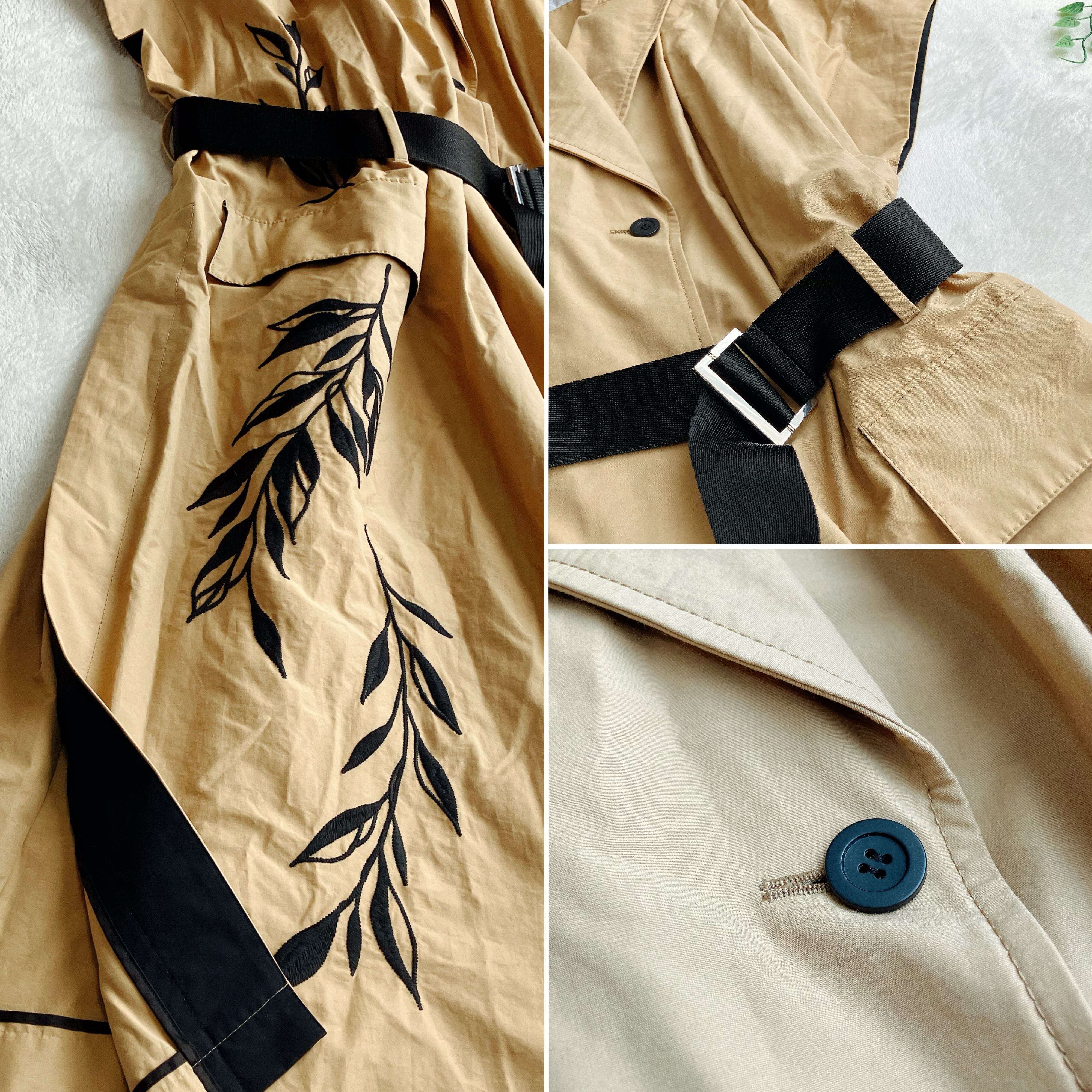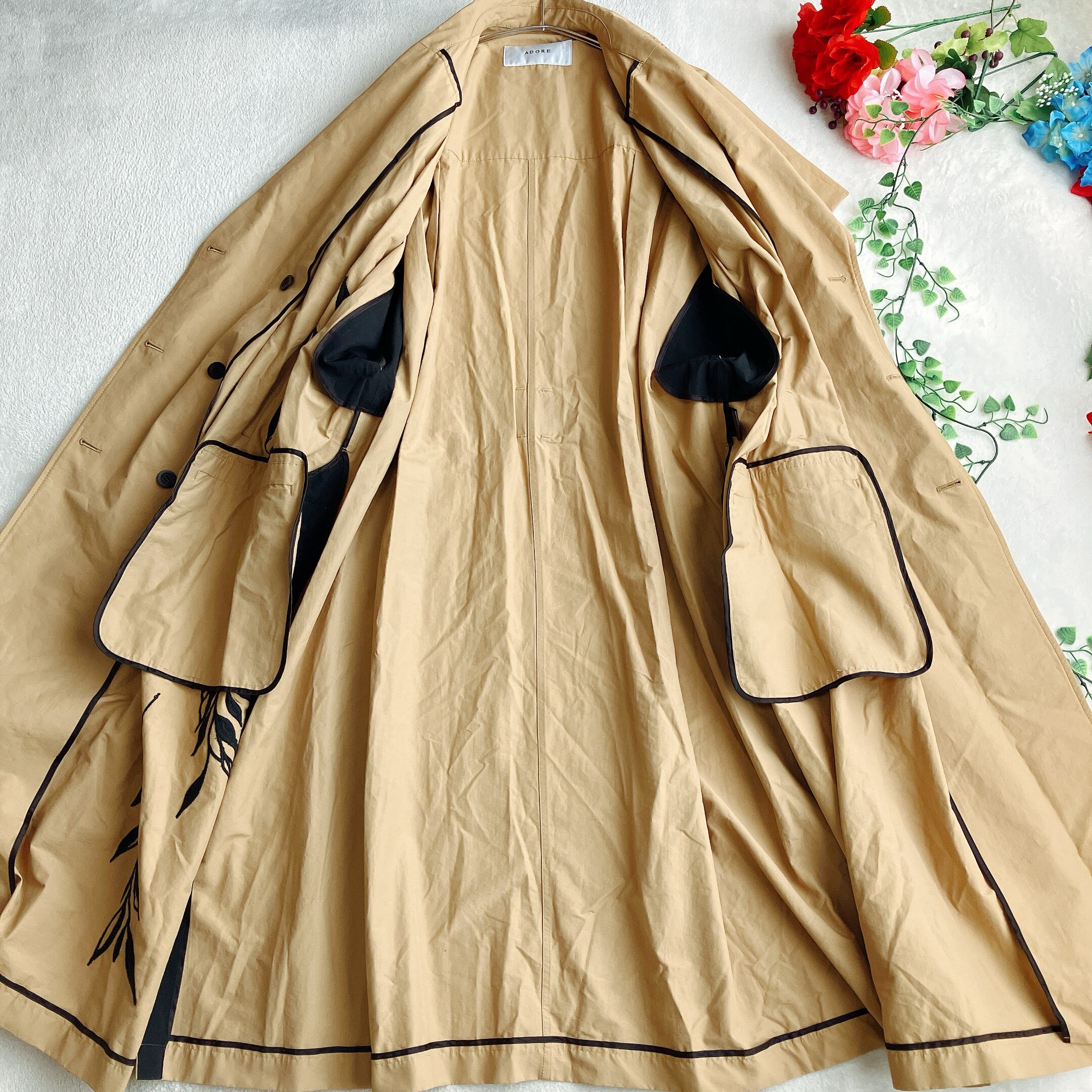 【美品/22SS】ADORE アドーア★コットンナイロンリーフエンブロイダリージレ ビッグシルエット ダブルボタン Aライン ベルト付き ベージュ